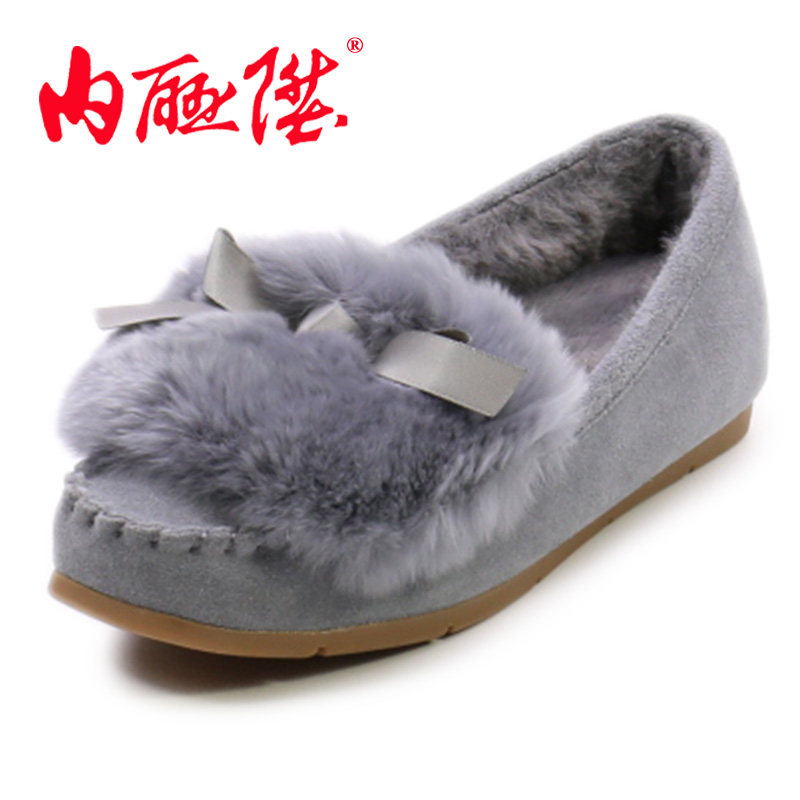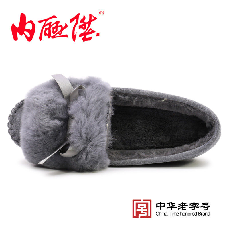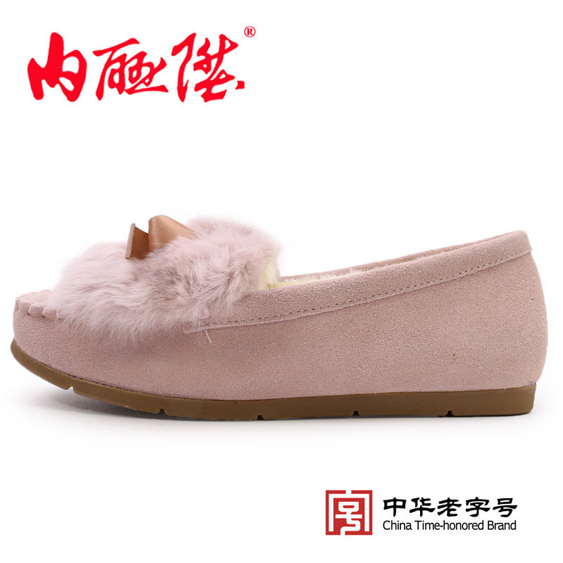 天猫内联升女棉鞋女士时尚船鞋冬季休闲棉鞋老字号北京布鞋4877C