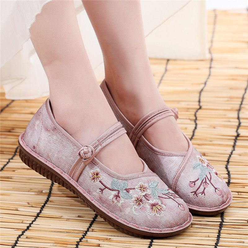 淘宝2024春季新款老北京绣花布鞋女平跟软底单鞋牛筋底中老年妈妈鞋