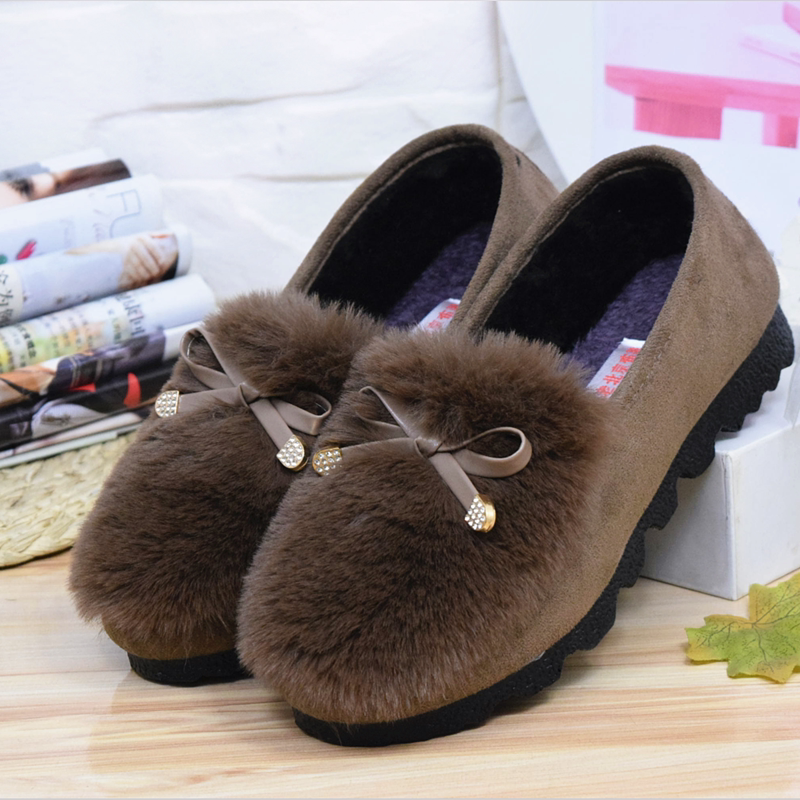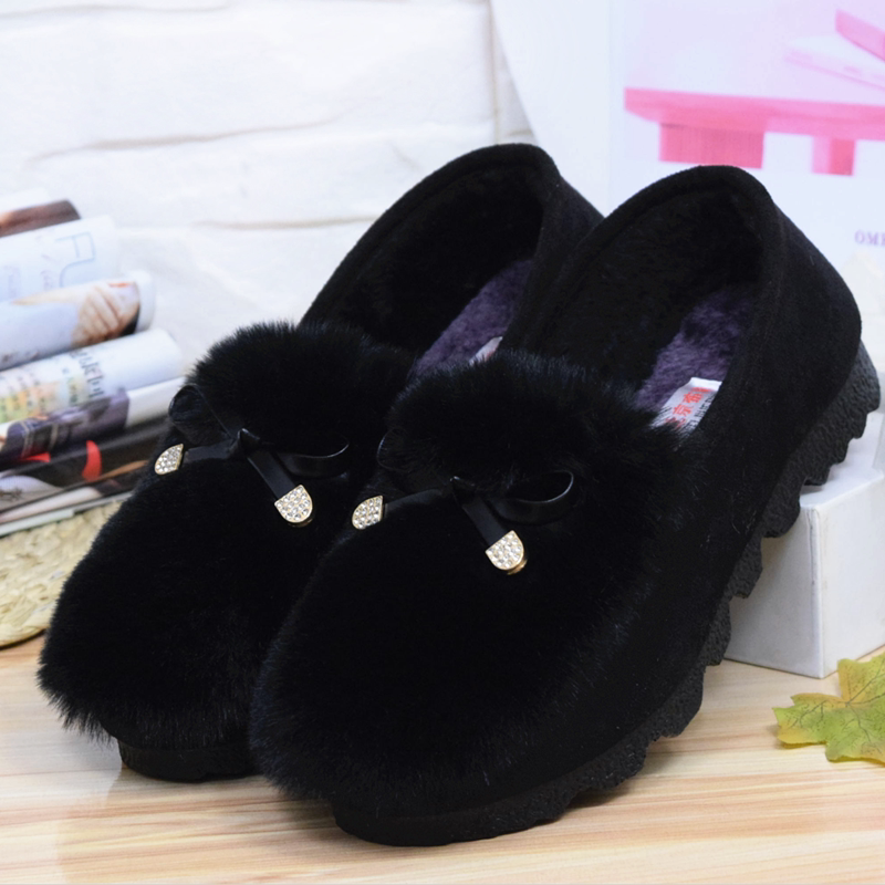 淘宝特大码秋冬季老北京布鞋棉鞋女蝴蝶结毛毛鞋加绒保暖圆头豆豆鞋女