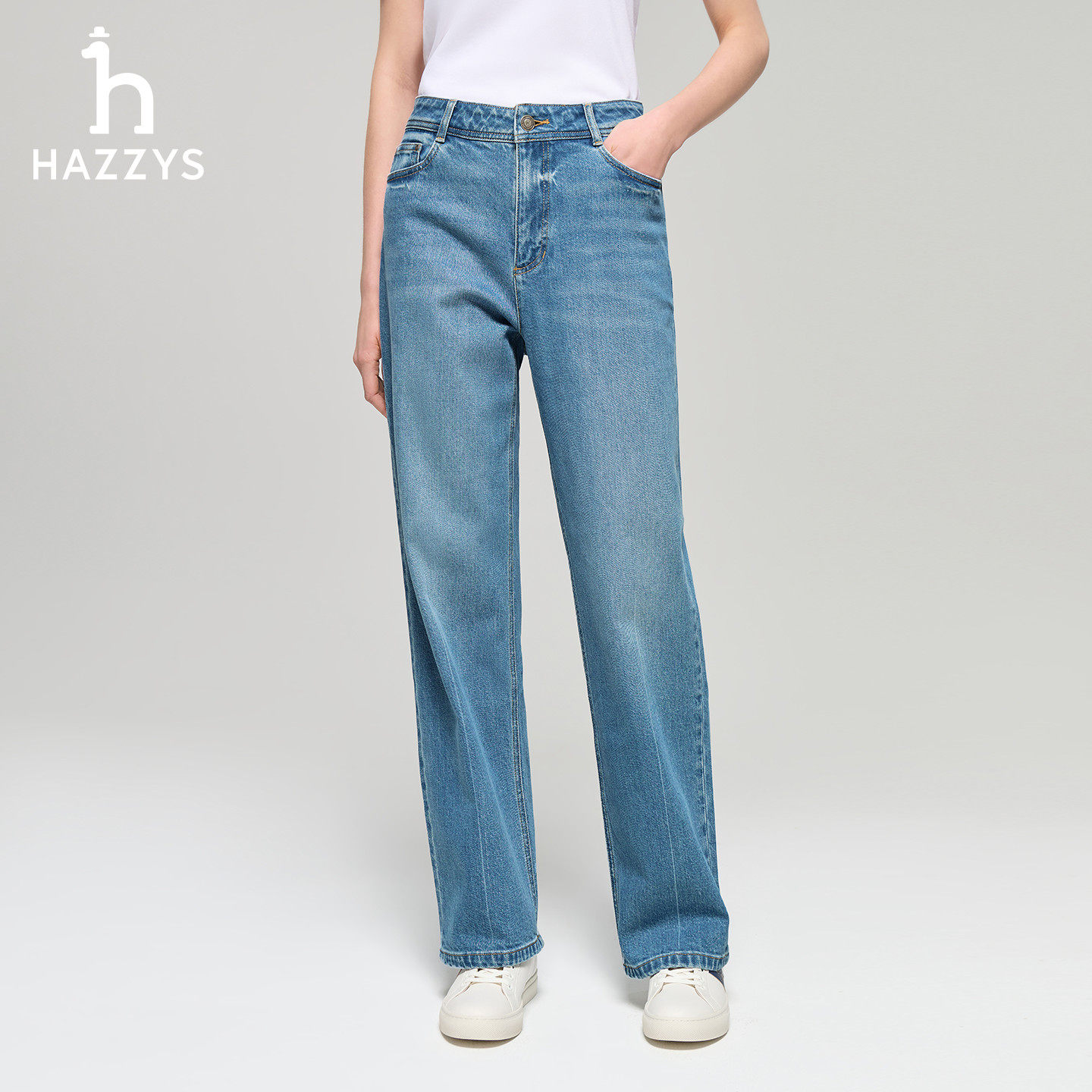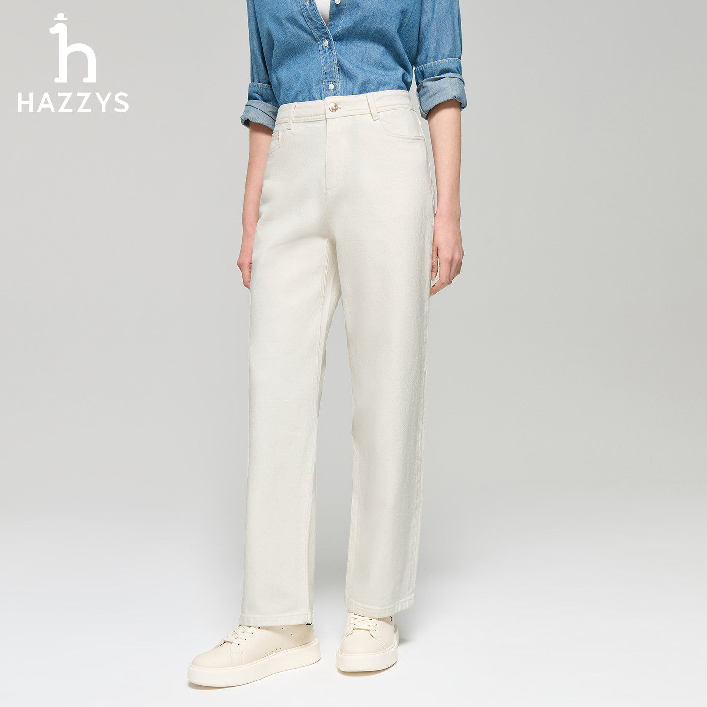 天猫Hazzys哈吉斯休闲裤女士春夏季时尚潮流直筒裤纯色通勤舒适长裤