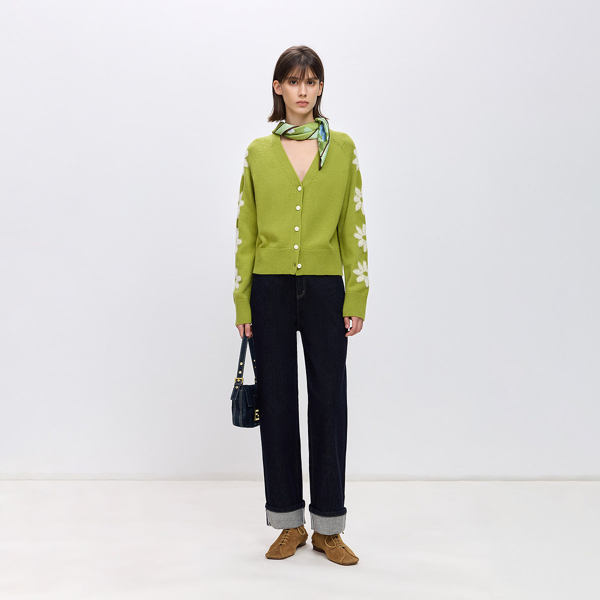 大码美式复古水洗波纹微喇牛仔裤女新款辣妹排扣褶皱直筒显瘦长裤