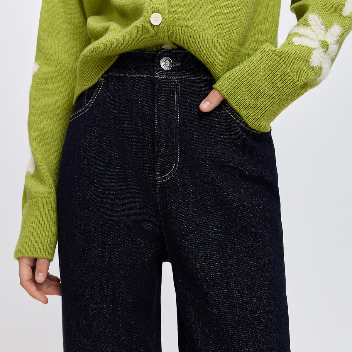 宛宛大码女装高腰烟管直筒裤胖mm冬季阔腿休闲宽松加绒加厚牛仔裤