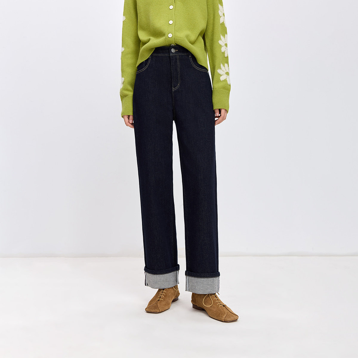 淘宛宛大码女装高腰烟管直筒裤胖mm冬季阔腿休闲宽松加绒加厚牛仔裤