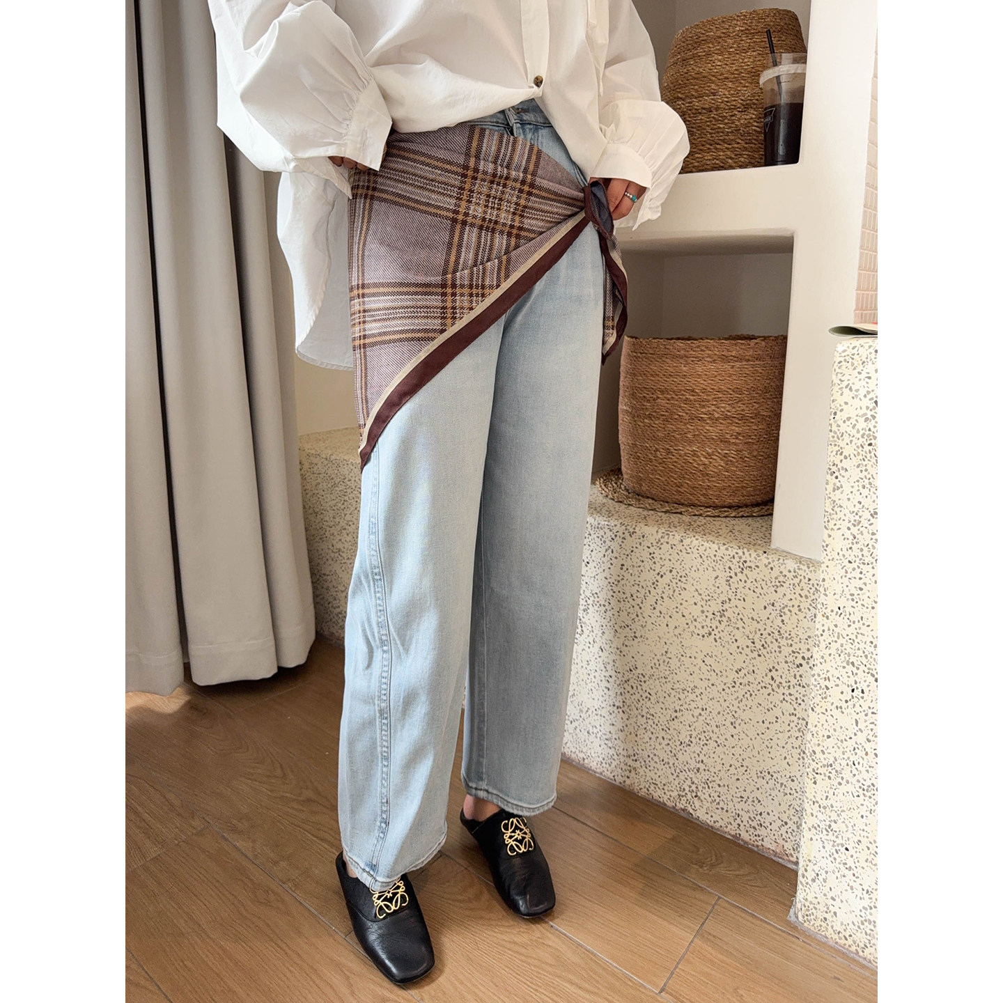 宛宛大码胖MM直筒牛仔裤女秋季新款高腰显瘦小个子九分烟管法棍裤