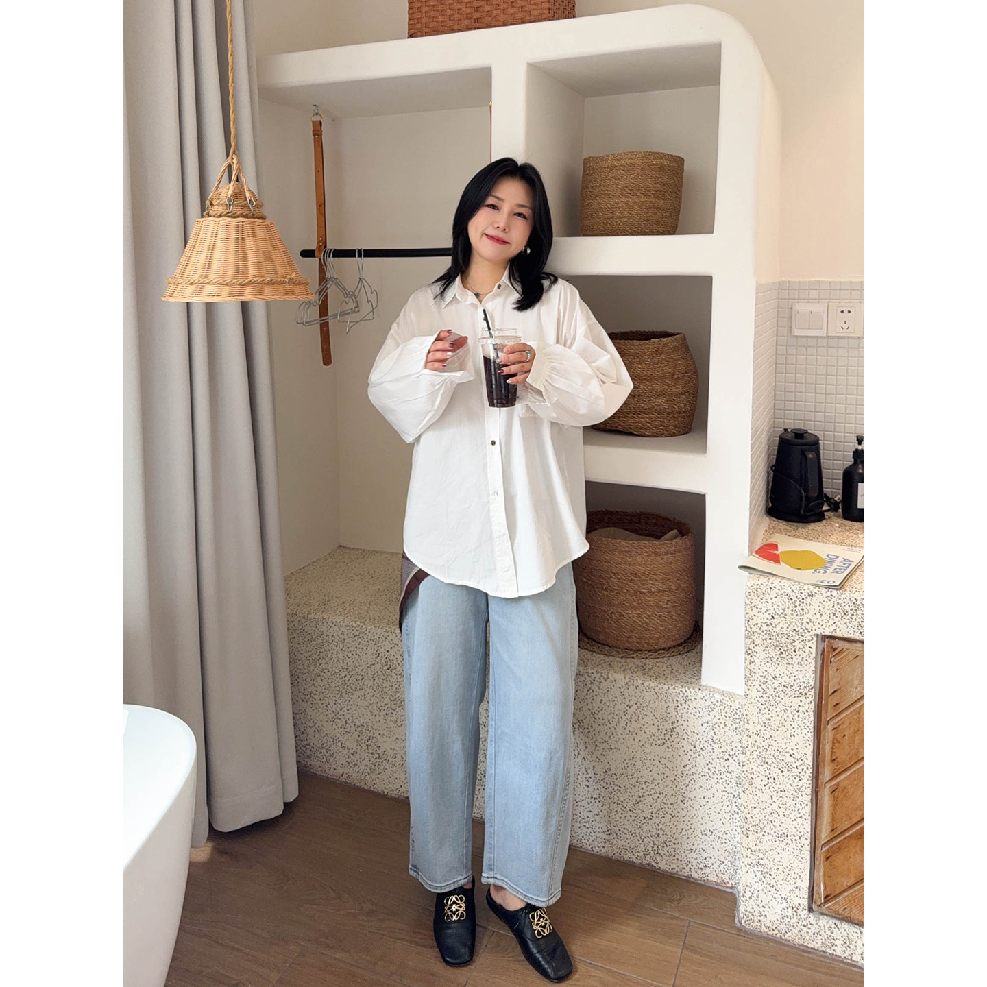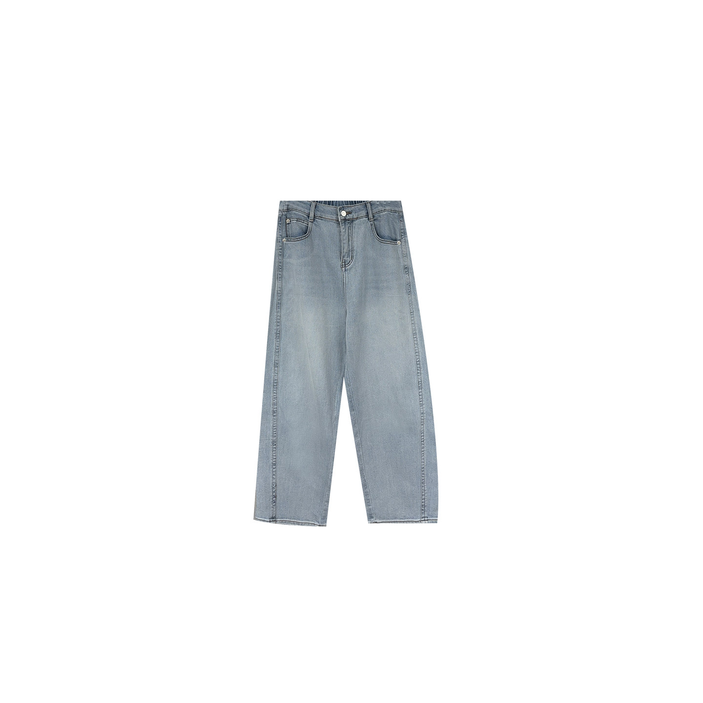 大码美式复古水洗波纹微喇牛仔裤女新款辣妹排扣褶皱直筒显瘦长裤