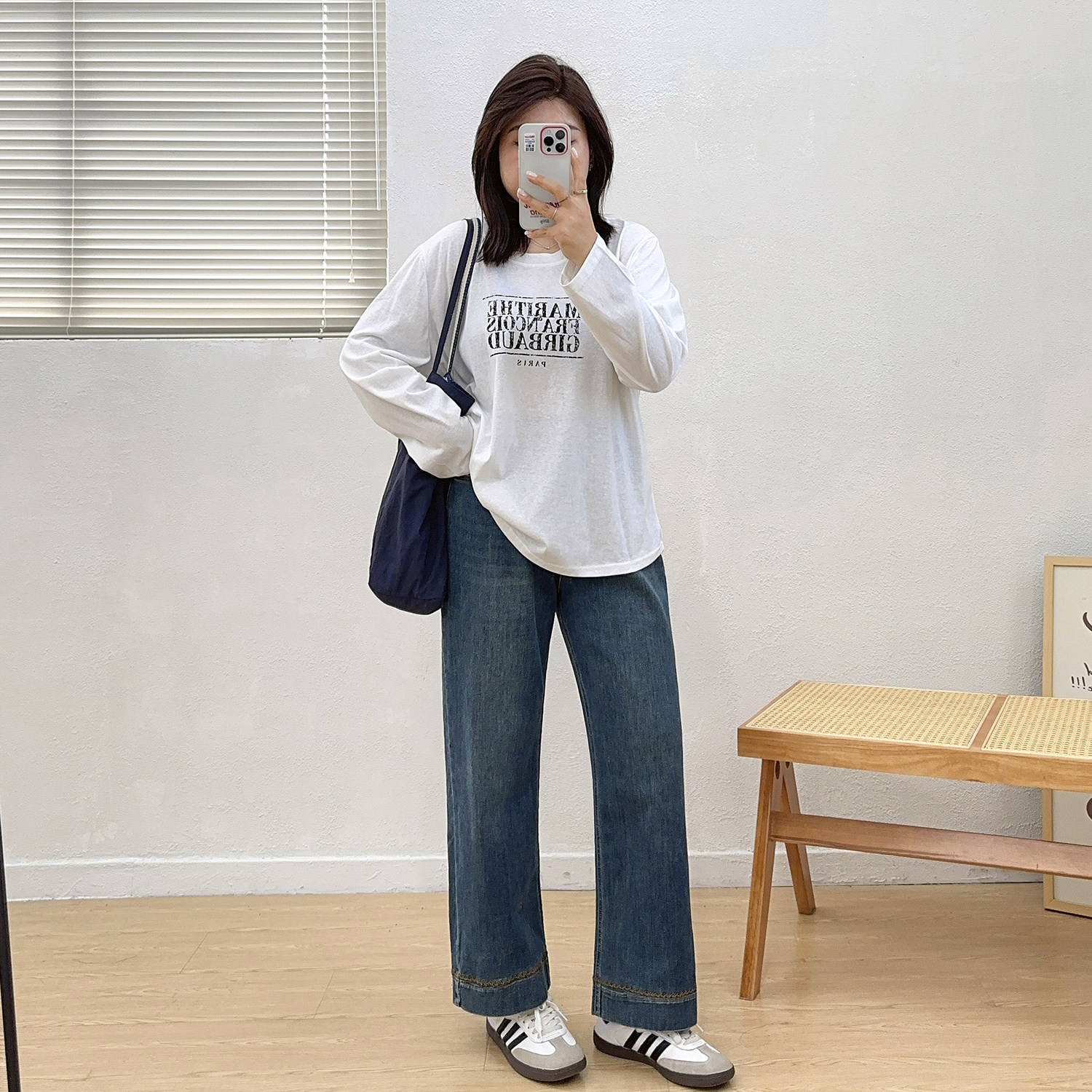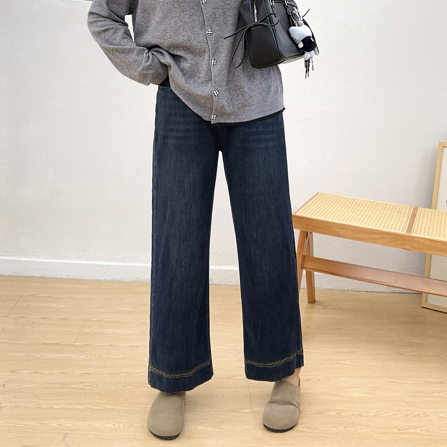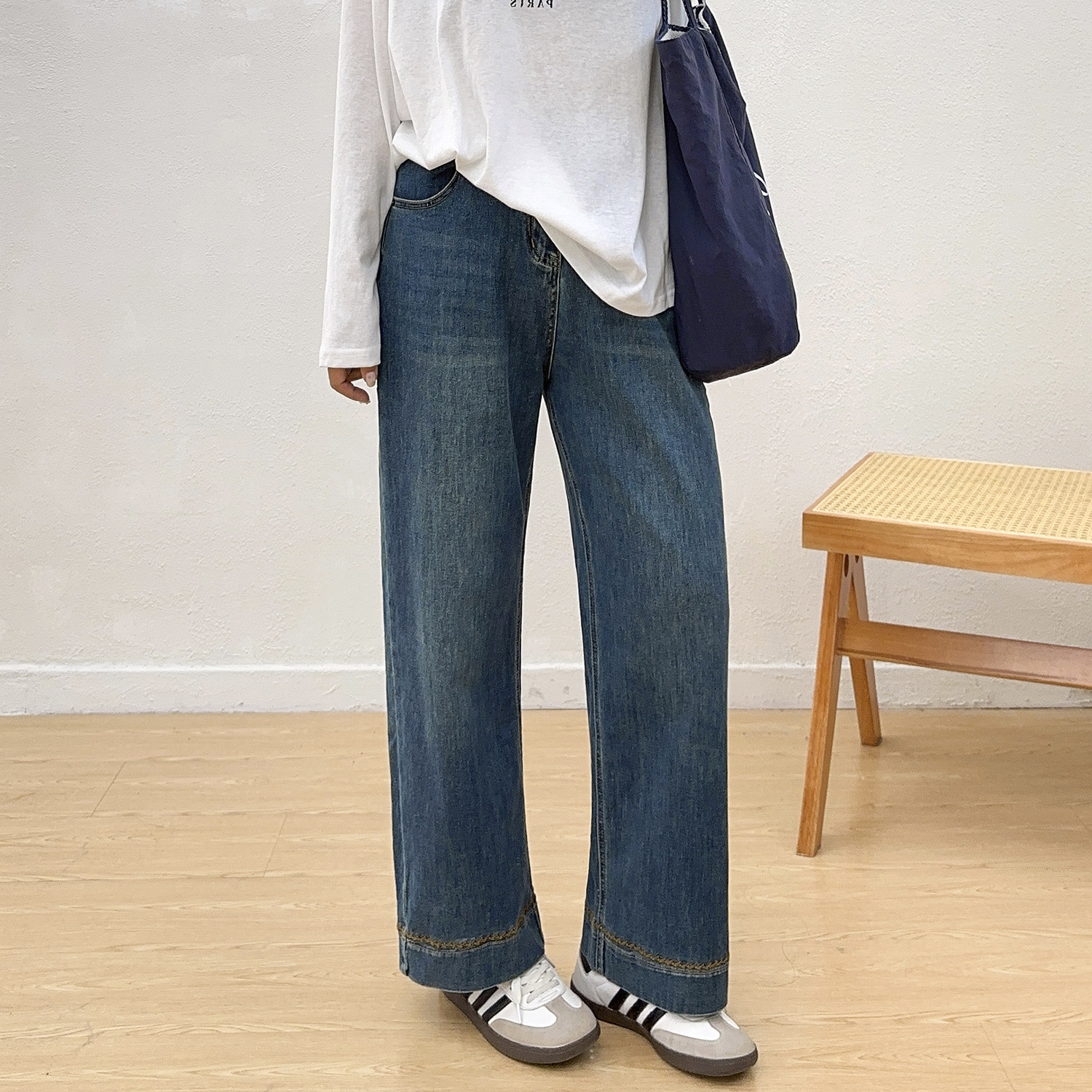 大码弹力加绒加厚牛仔裤子女秋冬新款慵懒风宽松阔腿显高直筒长裤