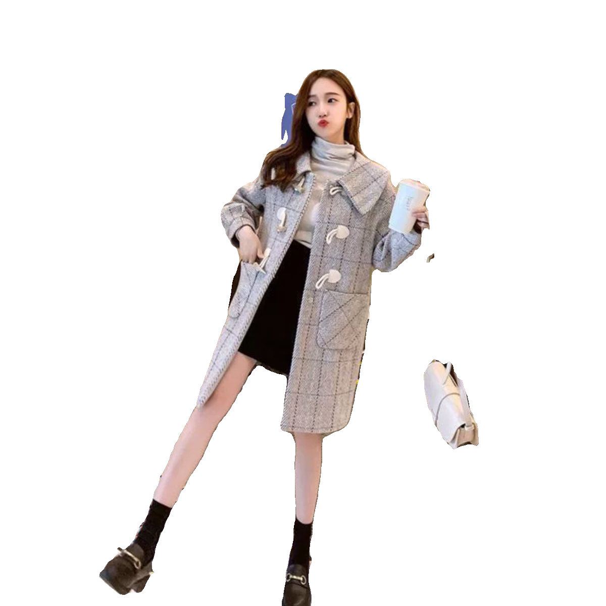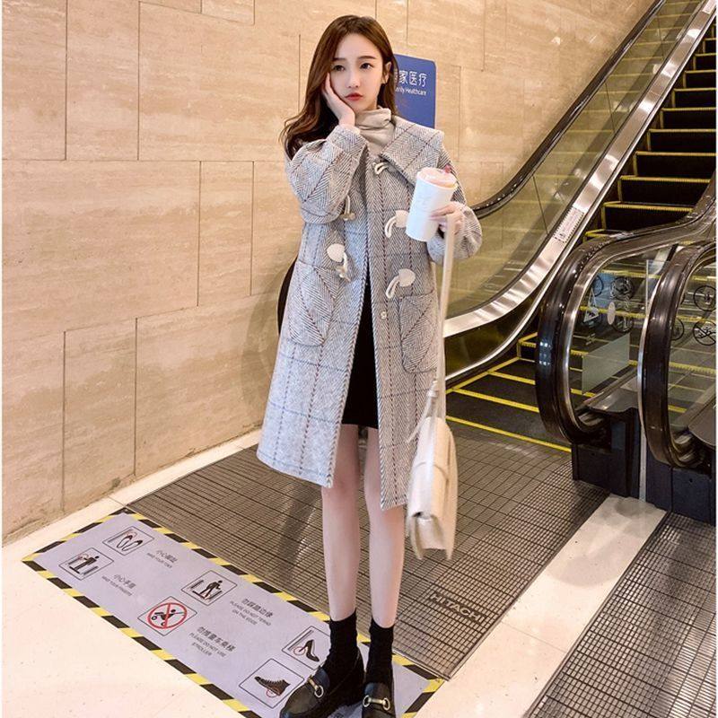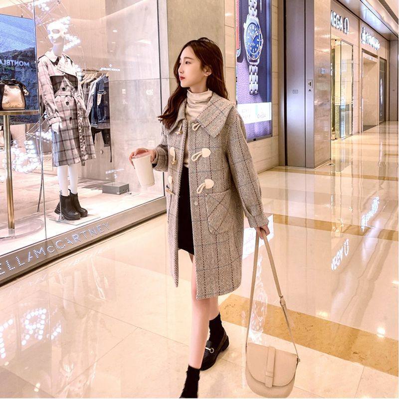 淘宝毛呢外套女中长款时尚宽松韩版牛角扣2023年秋冬呢子大衣女百搭潮