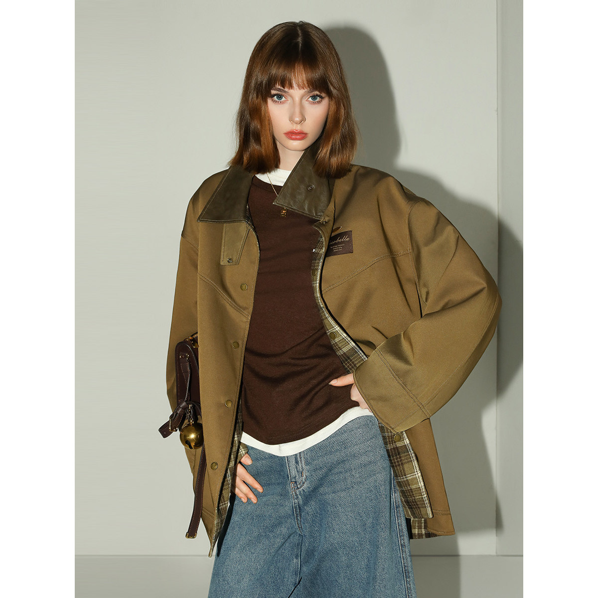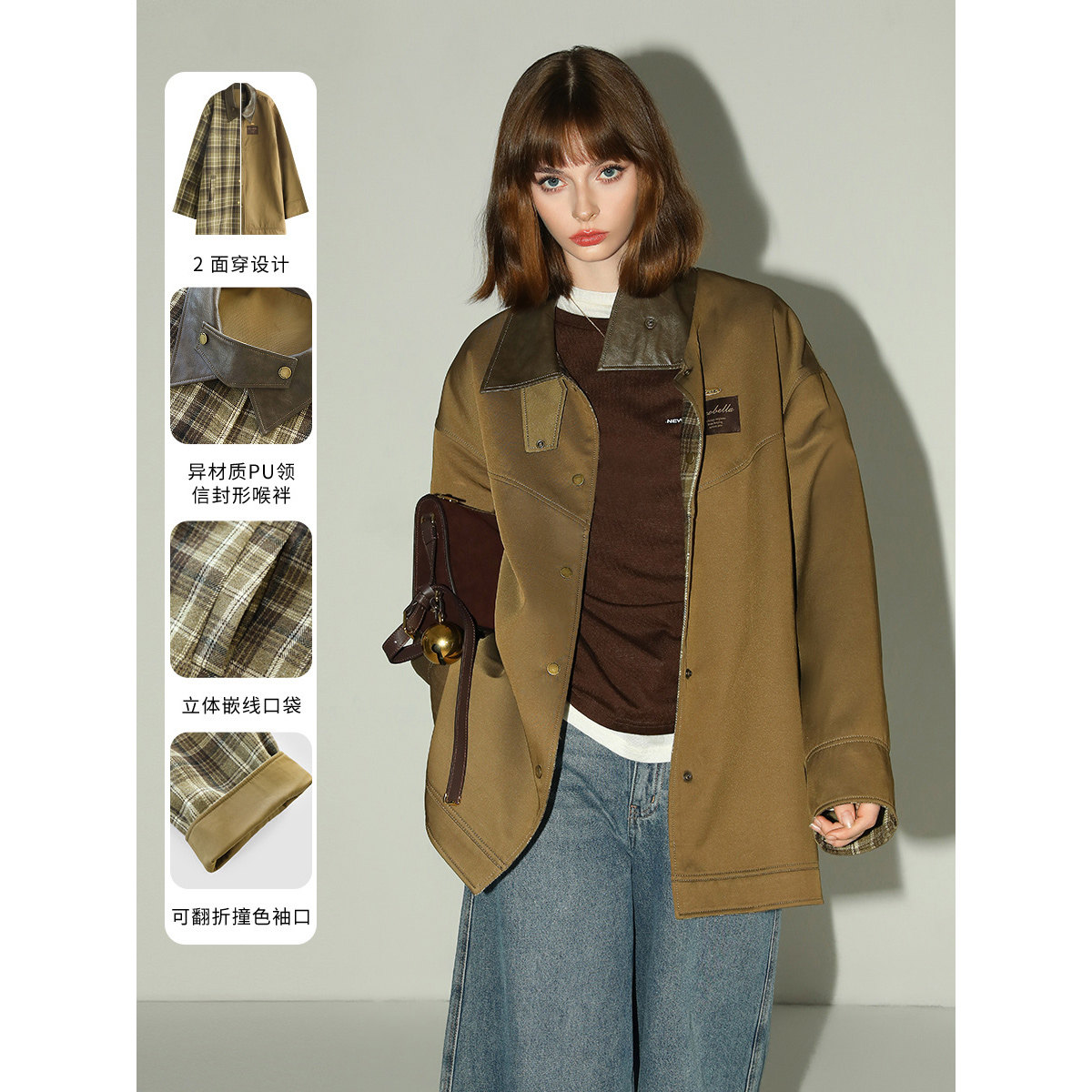 因由 粗花呢西装外套女时尚气质肌理感宽松显瘦休闲袖口开叉大衣