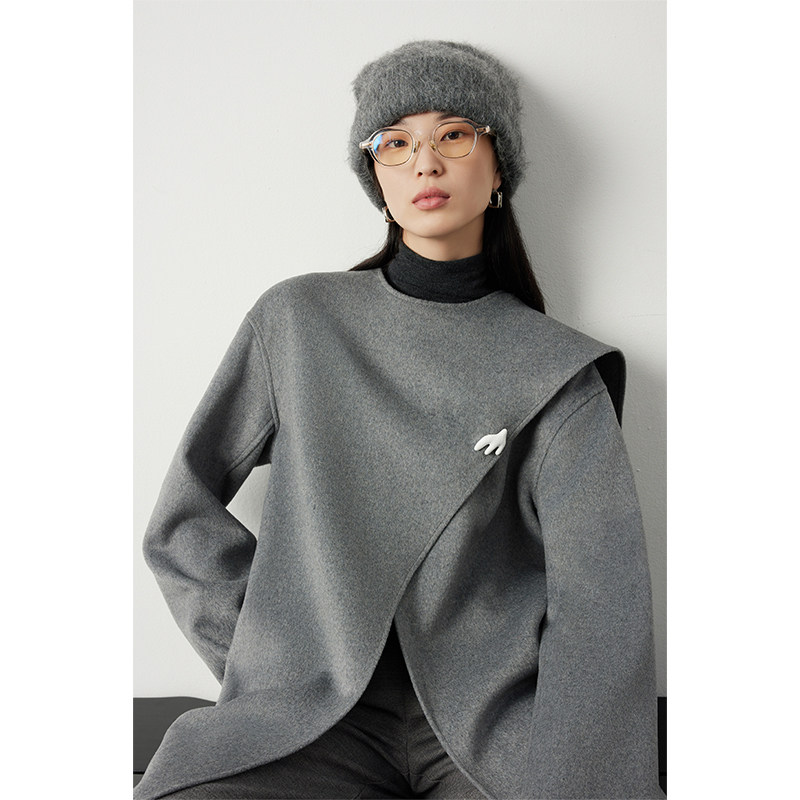 淘宝因由 奢牌秀场气质wang炸及简轻量无压感时髦多穿围巾领毛呢大衣