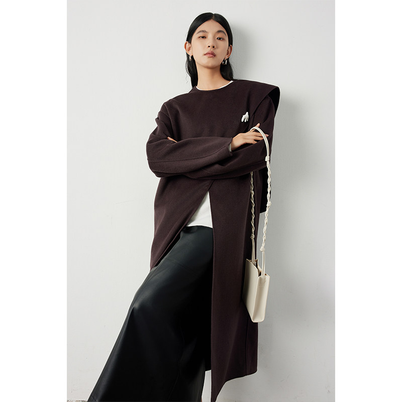 高端秋冬新款羊绒大衣女双面呢100%纯羊毛中长款系带超显瘦双面绒