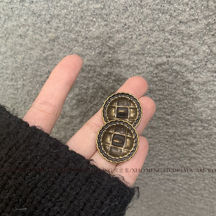 淘宝晓梦复古港风金属古铜色纽扣女装大衣粗花毛衣扣子小众设计感
