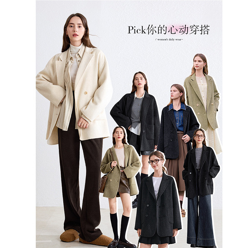 淘商场同款8596 双面呢羊绒大衣女冬季新款韩版妈妈短款羊毛外套
