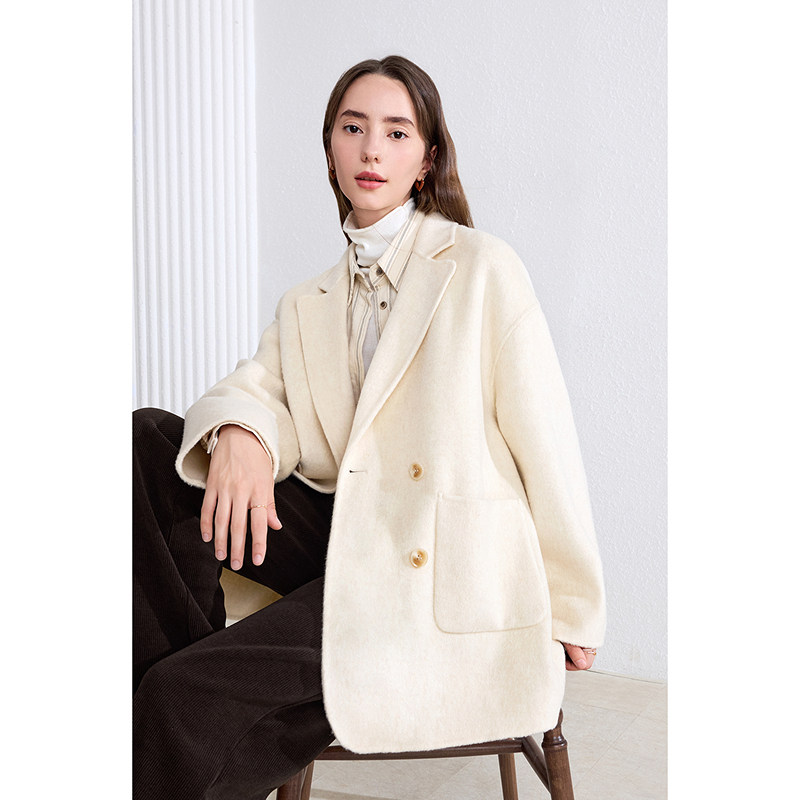 天猫betu百图纯羊毛双面呢外套女2025年冬季新款双排扣呢子大衣