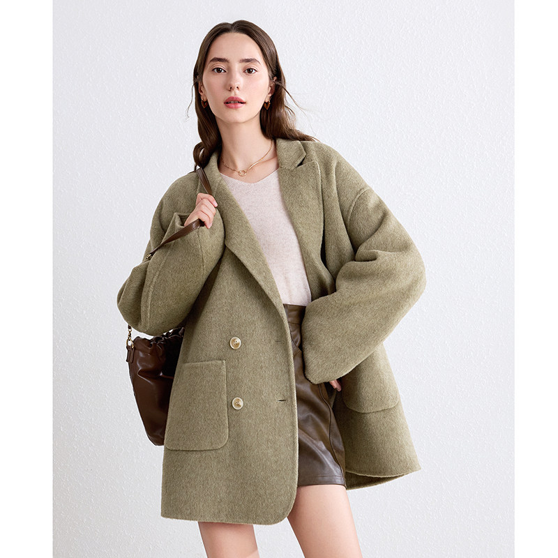 betu百图2025年冬季新款女式纯羊毛双面呢外套,精选优质澳洲美利奴羊毛,采用双面织造工艺,质感细腻、保暖性卓越。经典双排扣设计搭配利落剪裁,凸显优雅气质与都市女性干练风范。大衣廓形挺括有型,H版型包容性强,轻松修饰身形。精致金属扣饰与隐藏式口袋细节考究,兼顾美观与实用。多色可选,适配通勤、休闲等多种场合,是冬日衣橱不可或缺的时尚单品。betu以匠心工艺诠释经典,为现代女性打造温暖与风度并存的冬日穿搭体验。