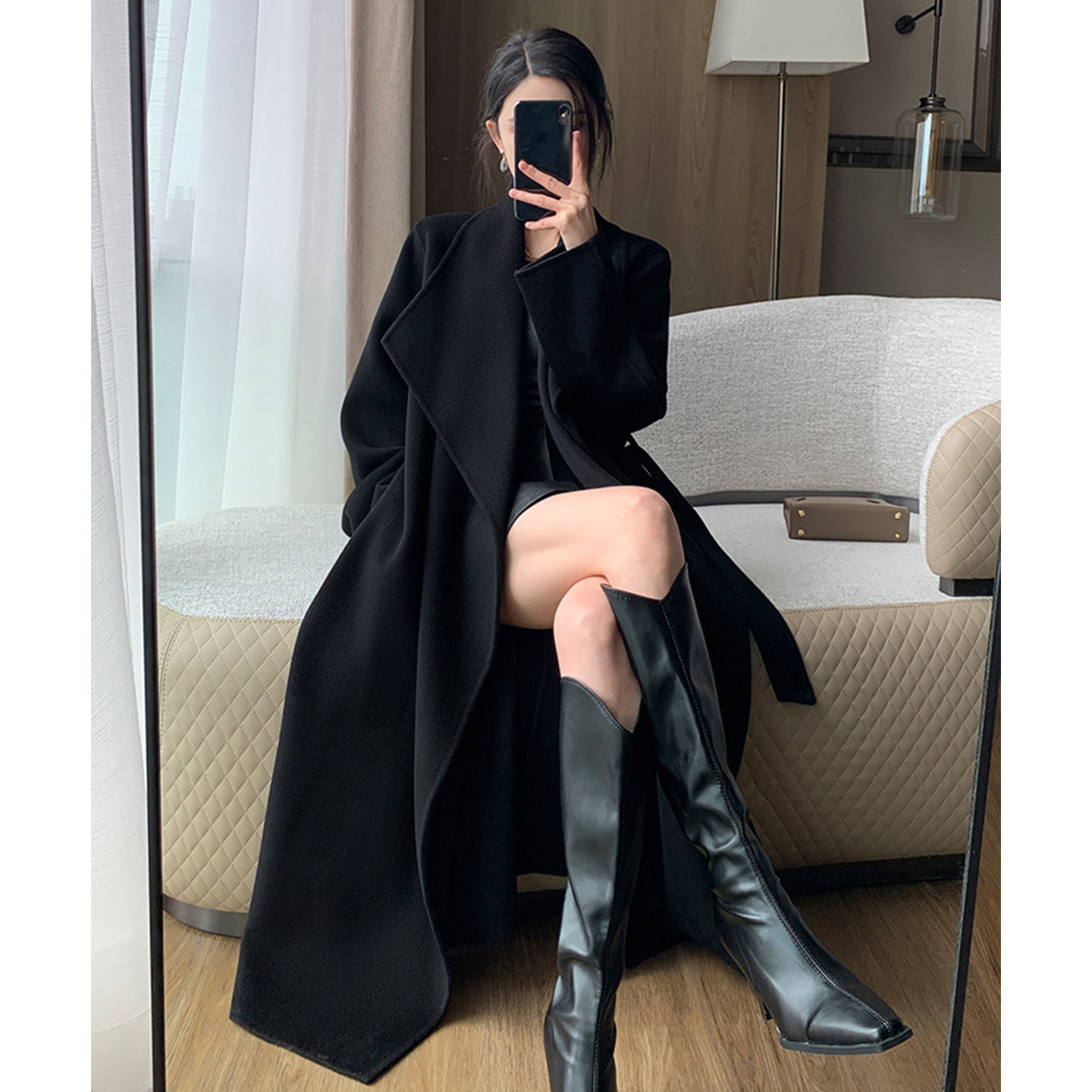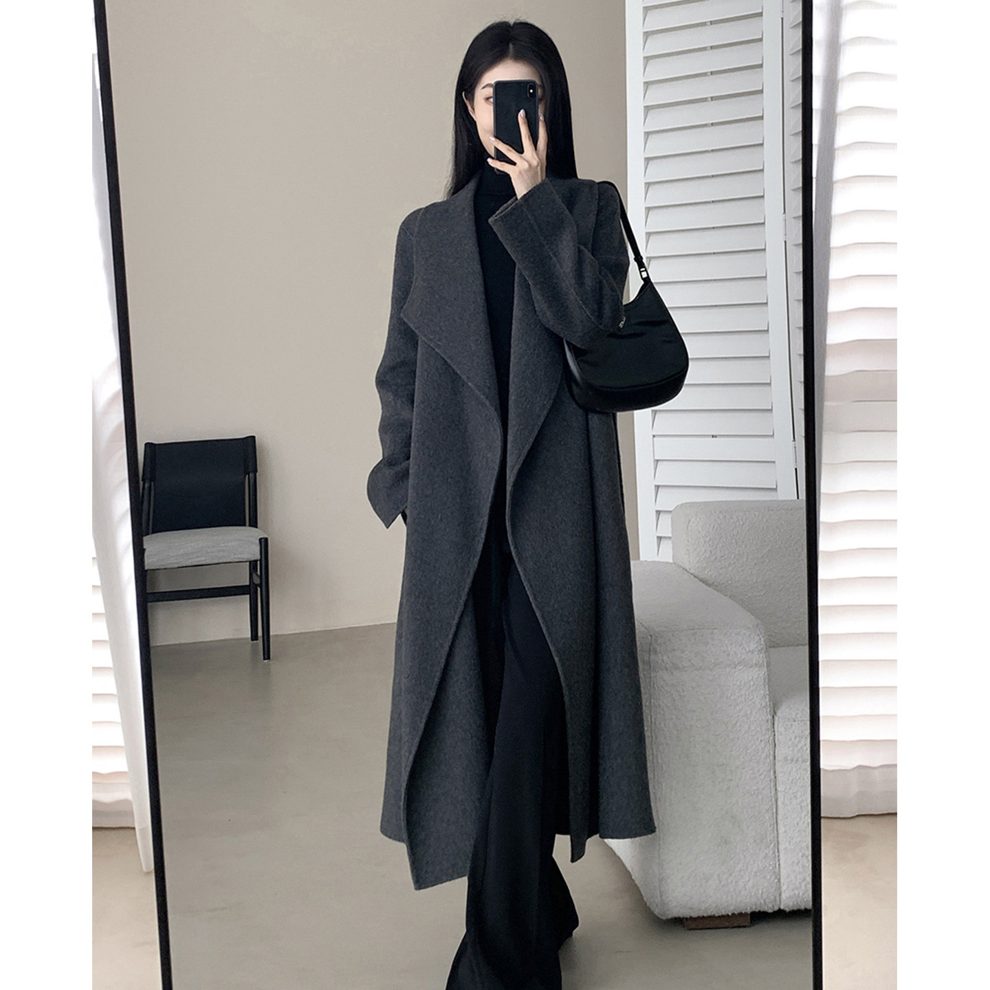 蓝色双面羊绒大衣女冬季新款高级感韩系大牌中长款牦牛绒毛呢外套