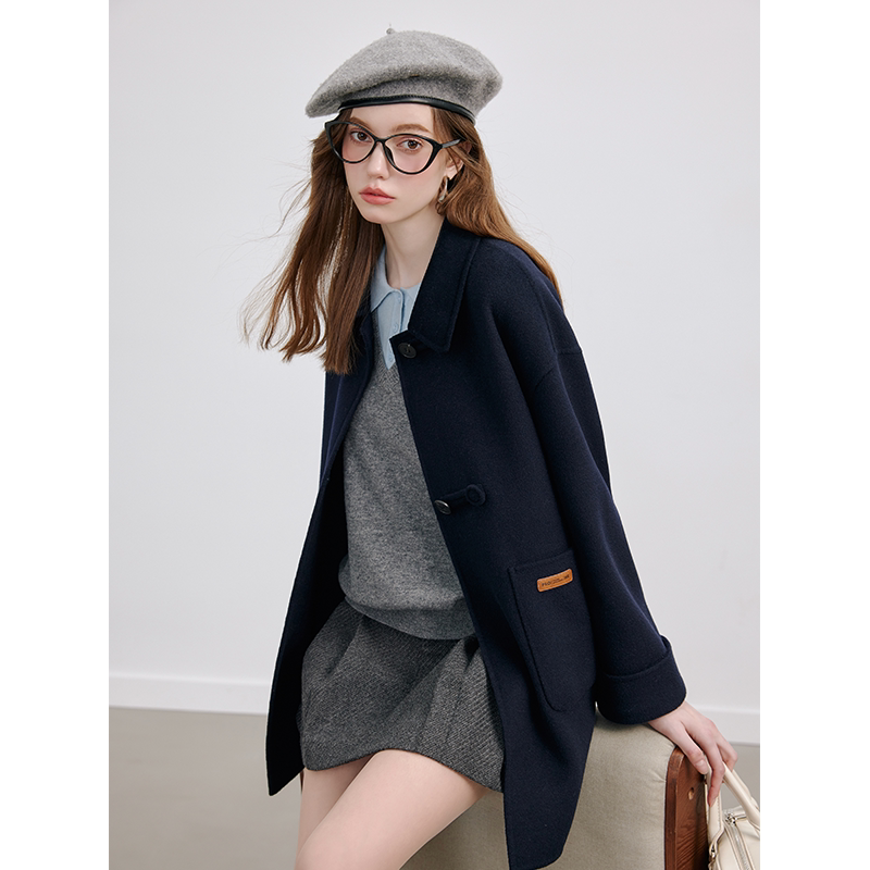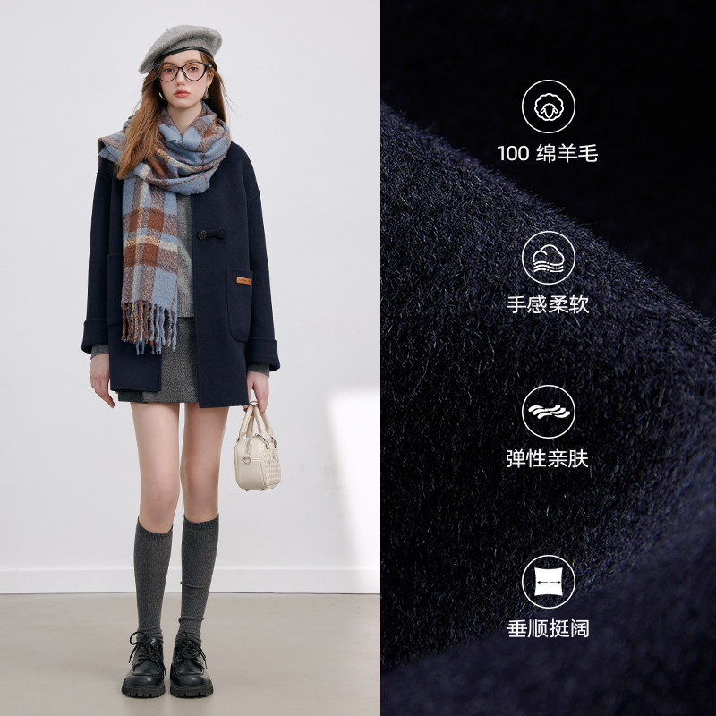 淘Th 2024秋冬新品女装 双面羊毛羊绒翻领短款大衣长外套 K0701412