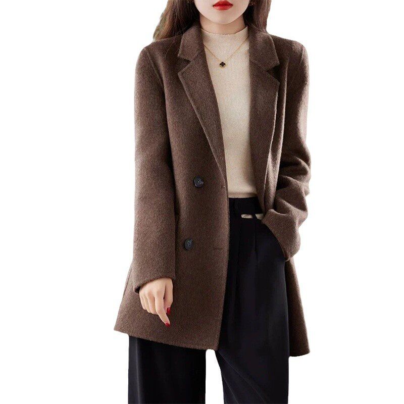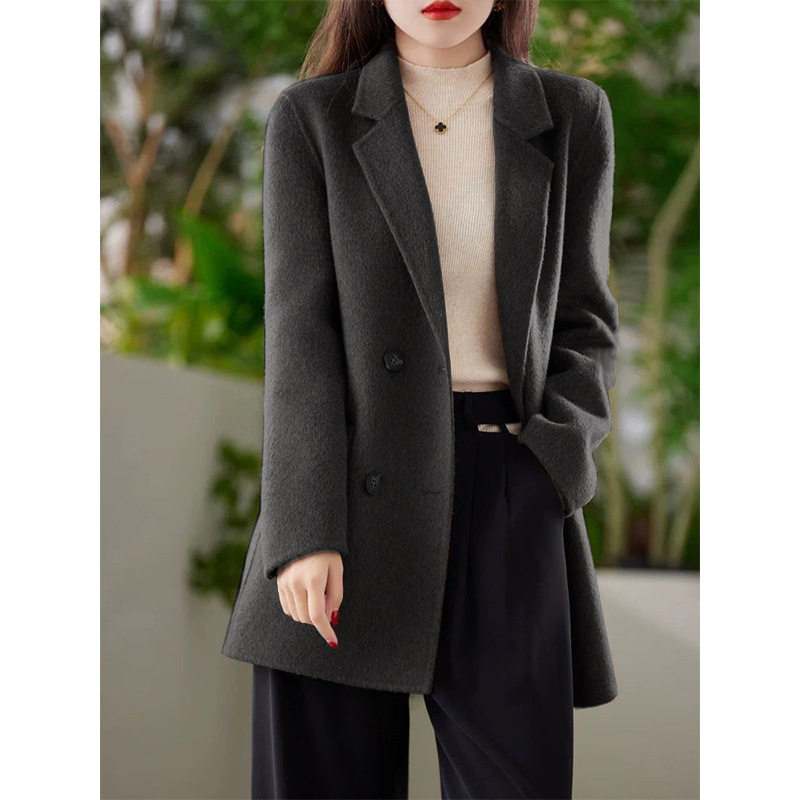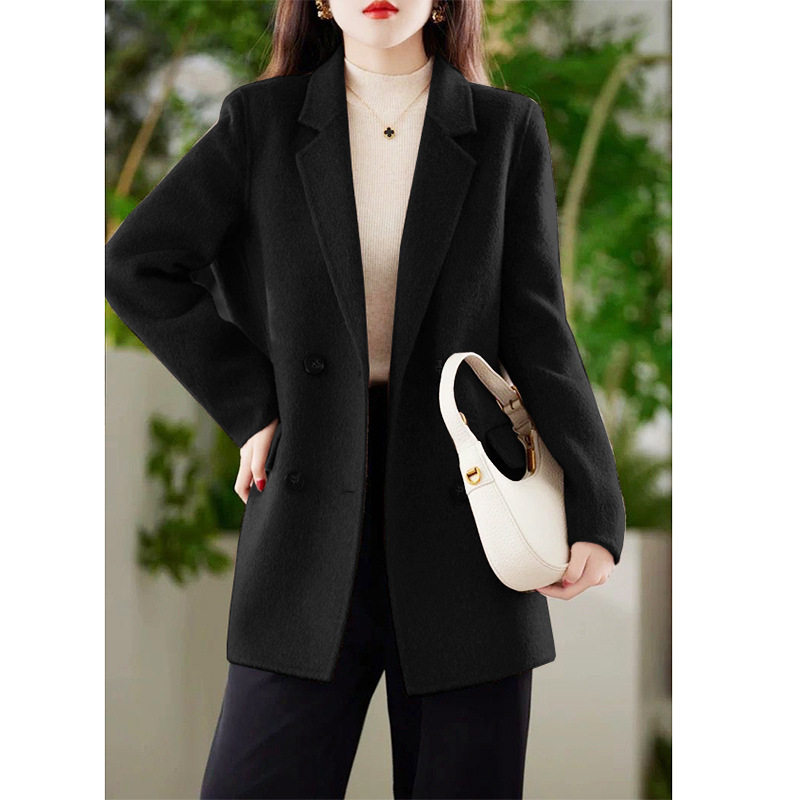 高档反季双面羊绒大衣女西装领韩版茧型宽松小个子羊毛呢子外套