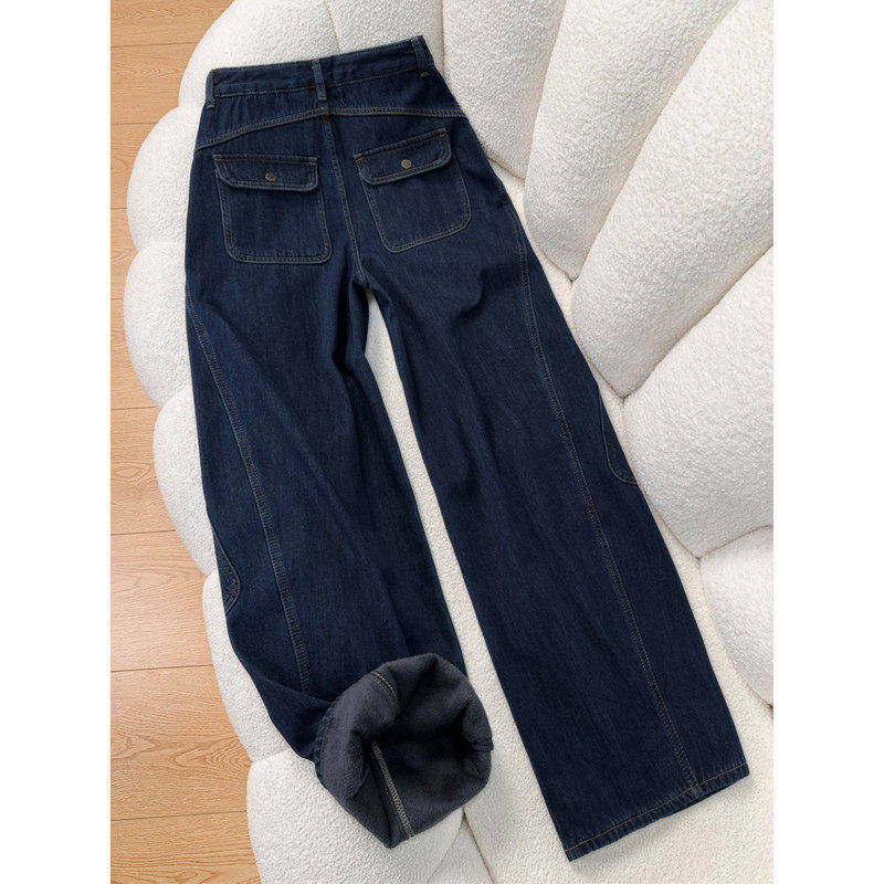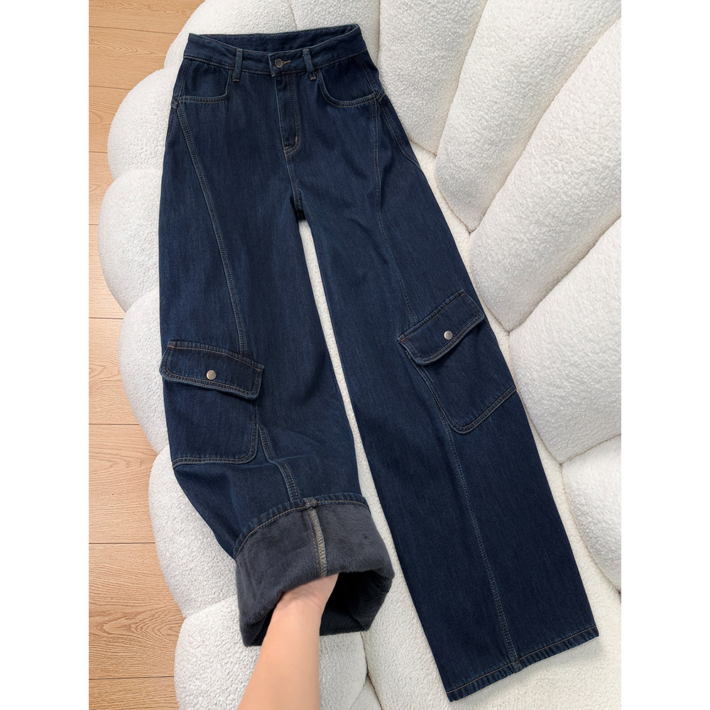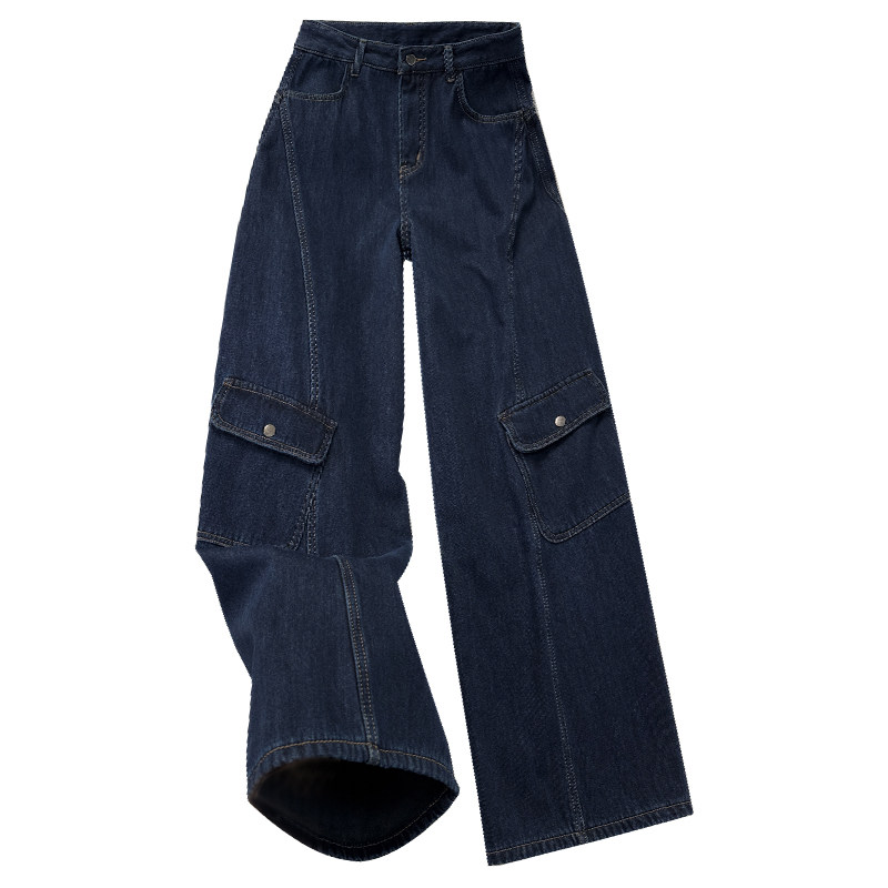 淘灰色阔腿工装裤女春季新款大码显瘦胖mm宽松慵懒风垂感直筒牛仔裤