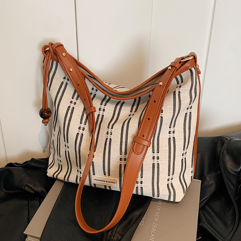 淘宝新中式国风包包女士2026新款时尚通勤条纹单肩包大容量斜挎水桶包