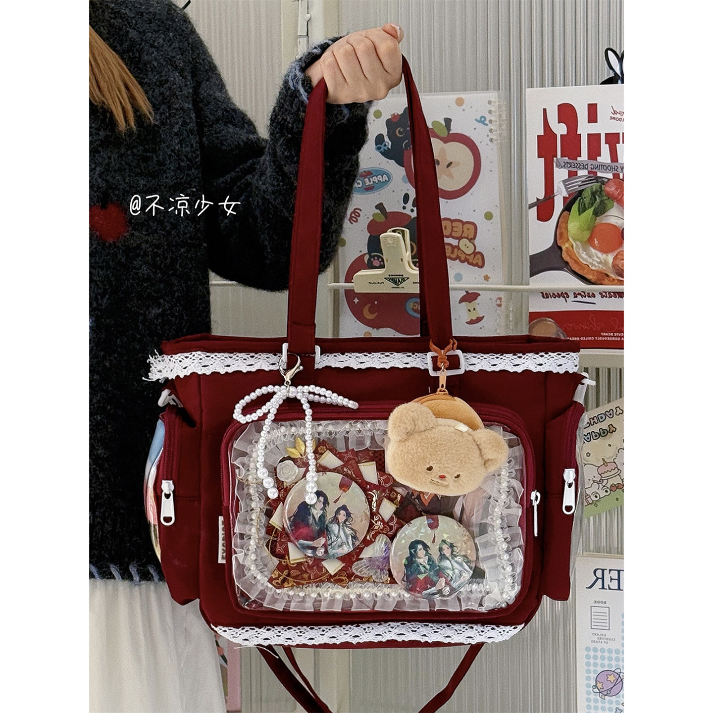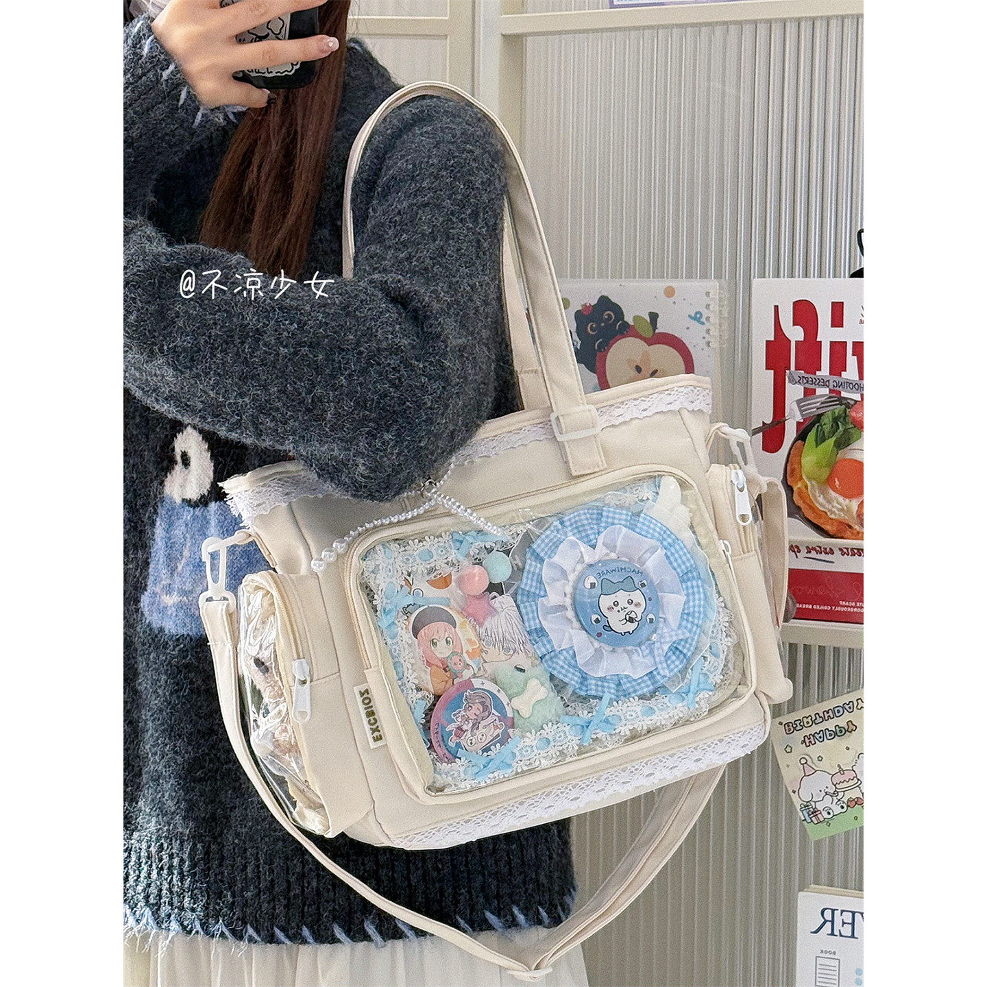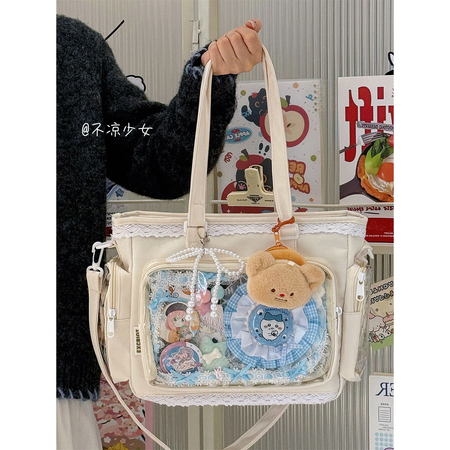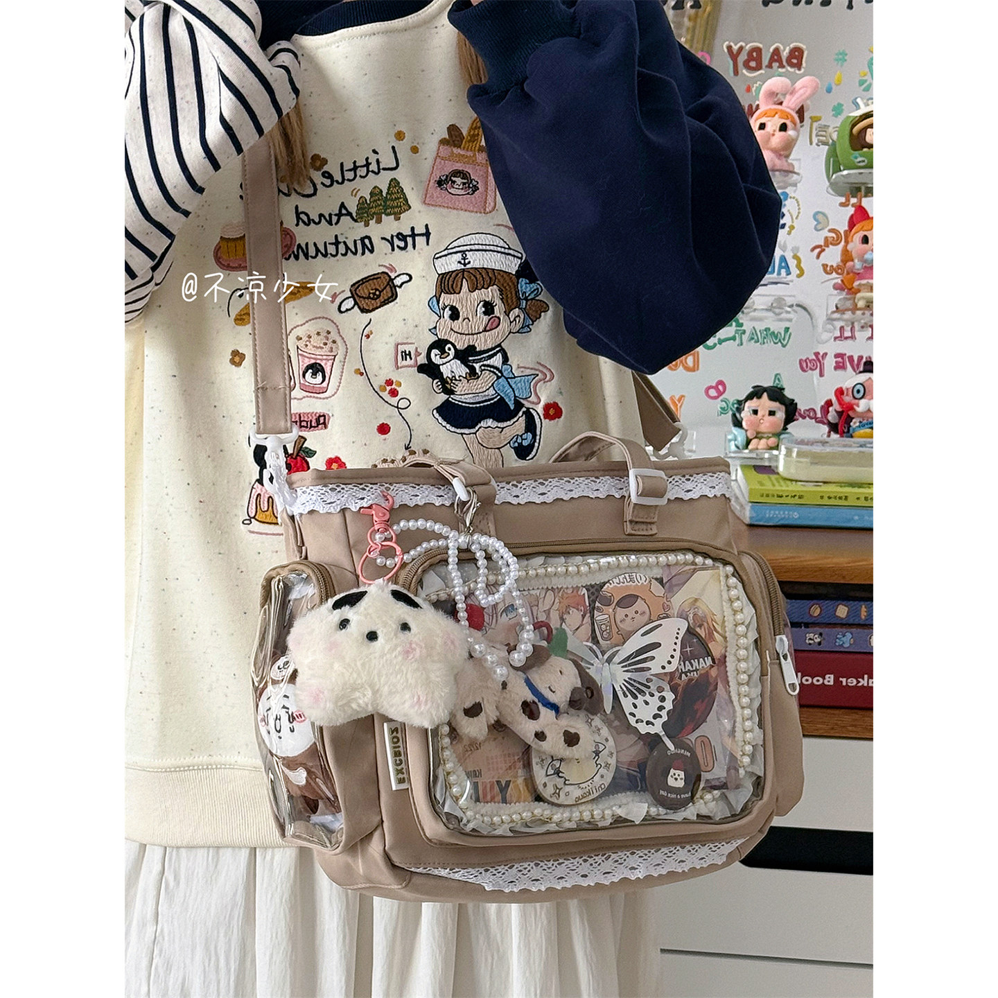 淘宝学院少女斜挎包大容量透明通勤包谷子吧唧扎板大食量蕾丝痛包娃包