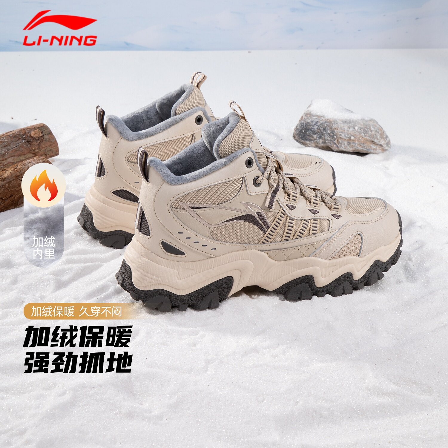 天猫李宁运动鞋男鞋2026秋冬新款厚底耐磨高帮大棉加绒男士休闲鞋棉鞋