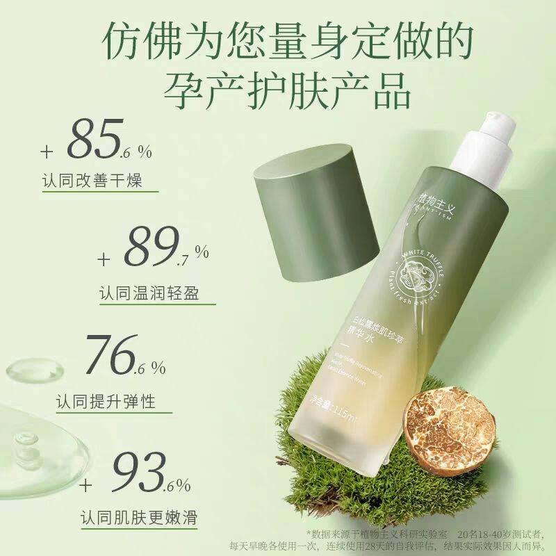 植物主义白松露孕妇补水保湿水乳套装,专为孕期及哺乳期女性设计,采用天然植物精粹,核心成分白松露提取物富含多酚与氨基酸,深层滋养、舒缓肌肤。配方温和无添加,不含酒精、香精、防腐剂及孕妇慎用成分,通过敏感肌测试,安全亲肤。水乳质地轻盈易吸收,迅速补水锁水,改善孕期肌肤干燥、暗沉问题,增强肌肤屏障。适用于敏感肌及脆弱肌质,孕产期全程安心使用。包装简约环保,使用体验舒适,是准妈妈护肤的理想选择,让肌肤在特殊时期依然水润透亮、健康稳定。