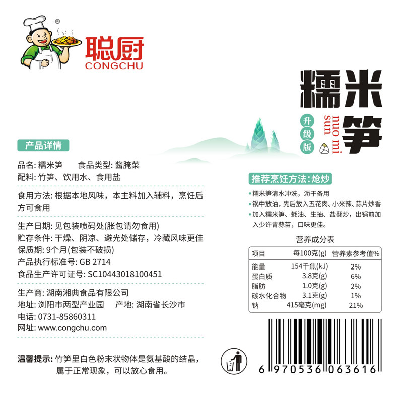 天猫聪厨糯米笋200g*1袋湖南竹笋嫩笋尖笋丝半成品美食快手菜
