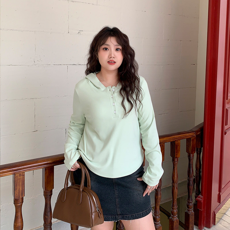 淘宝YUZI鱼子露思2.0大码正肩内搭T恤女微胖mm显瘦连帽打底衫休闲运动