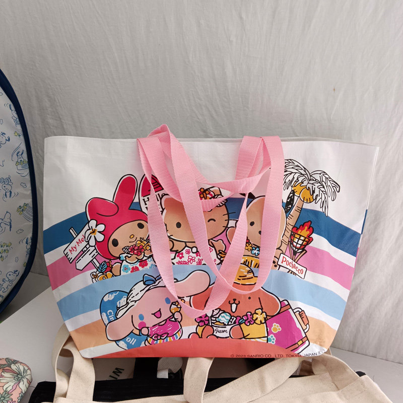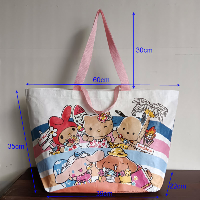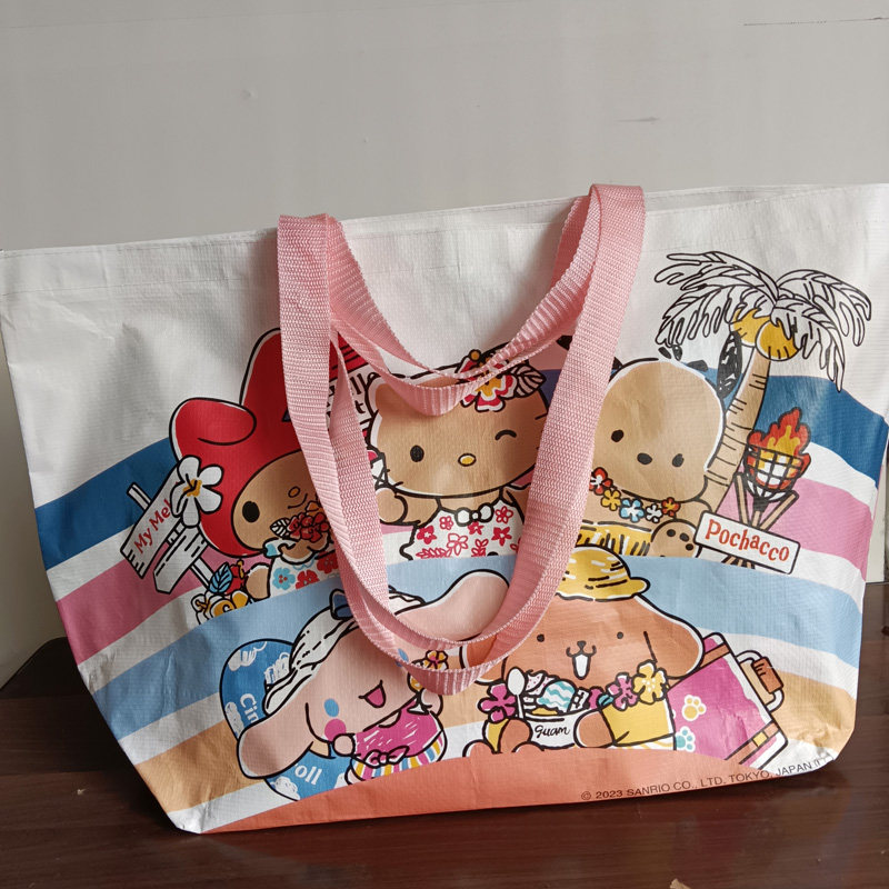 淘宝外贸原单大容量卡通编织覆膜防水环保袋购物袋手提单肩包收纳袋