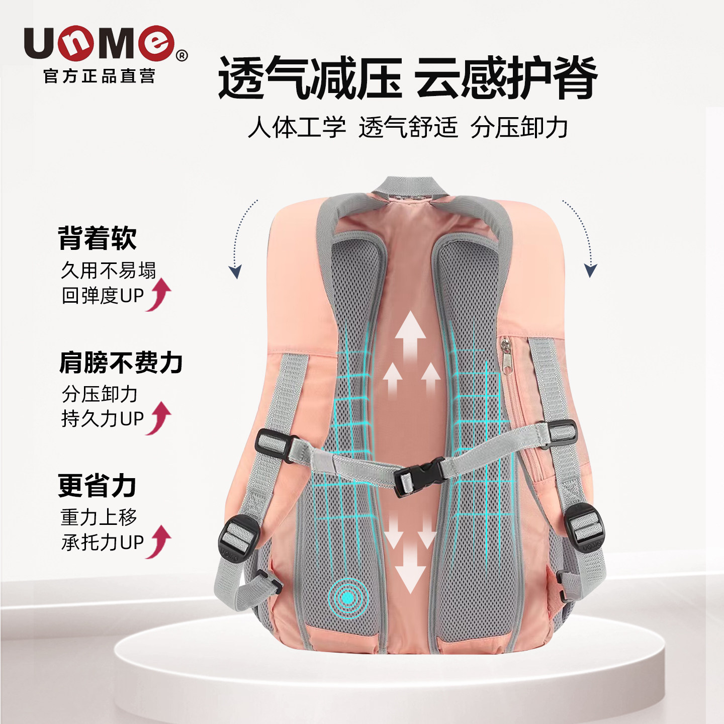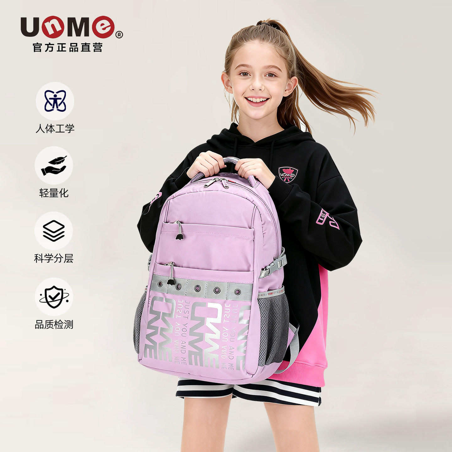 UNME台湾品牌书包专为小学六年级至高中生设计,兼顾大容量与轻便减压功能。采用人体工学肩带与背部透气衬垫,有效分散肩部压力,长时间背负更舒适。书包结构分区合理,主袋、侧袋及前袋满足课本、文具、水壶等收纳需求。精选高密度防水面料,防泼水耐脏污,雨天出行无忧。男女通用设计,简约时尚,适合初中生、高中生及小学高年级学生日常使用。轻量化材质减轻整体重量,提升背负体验,是兼顾实用性与舒适性的理想校园背包选择。