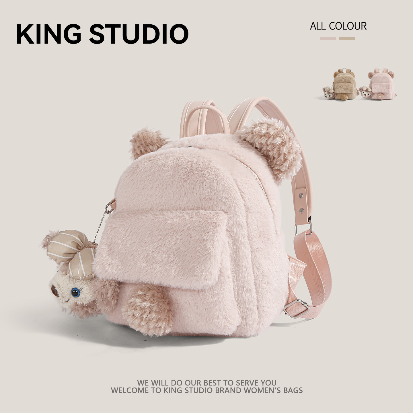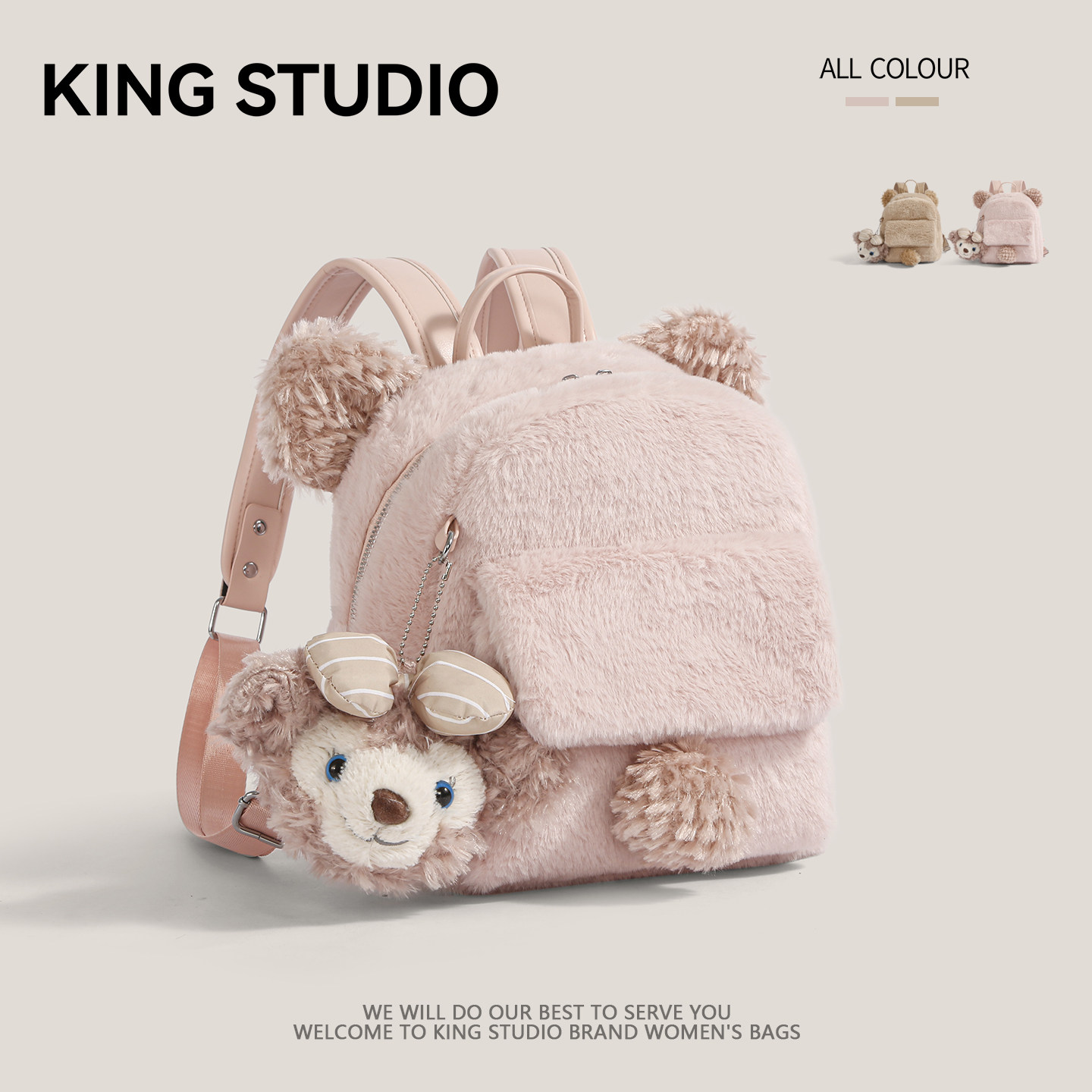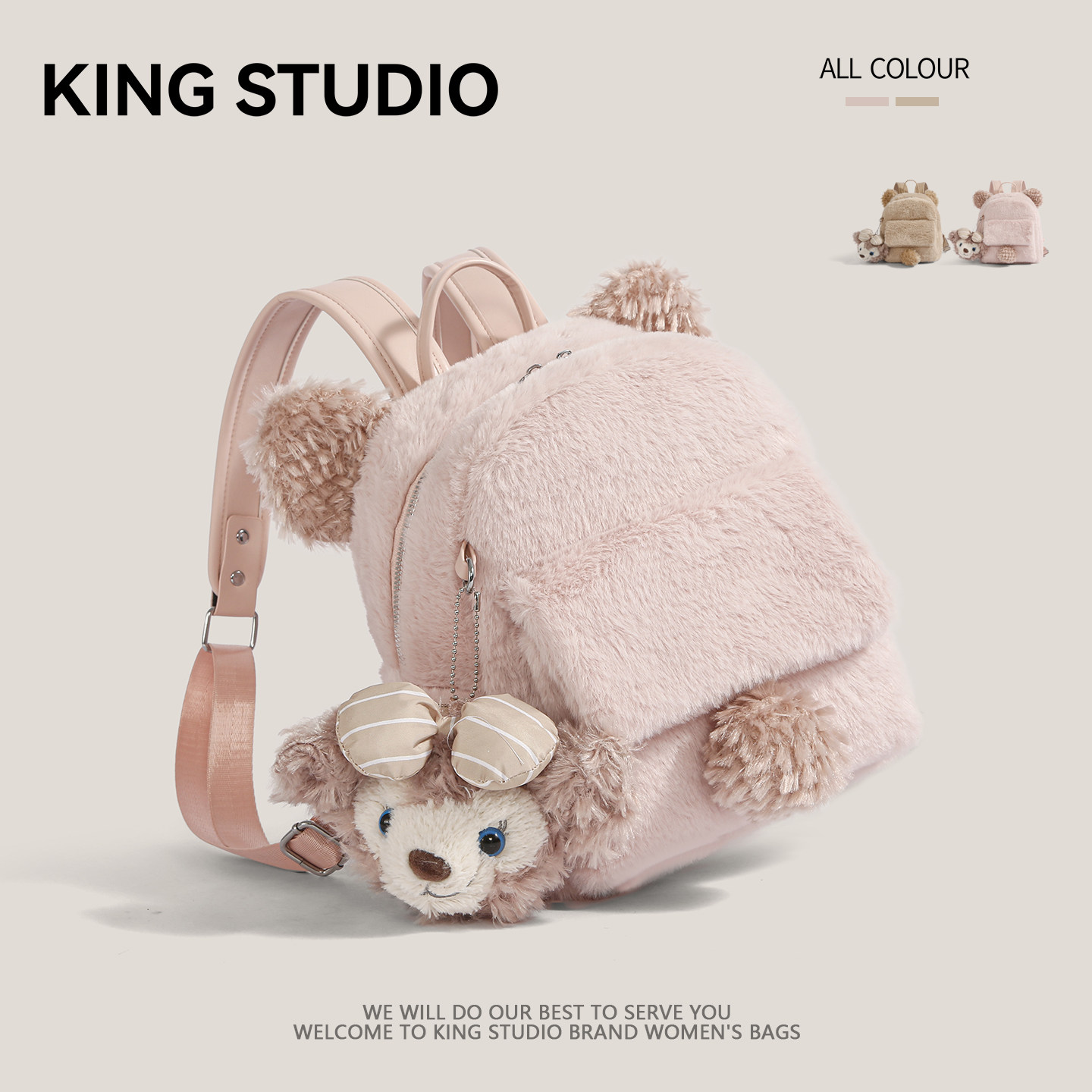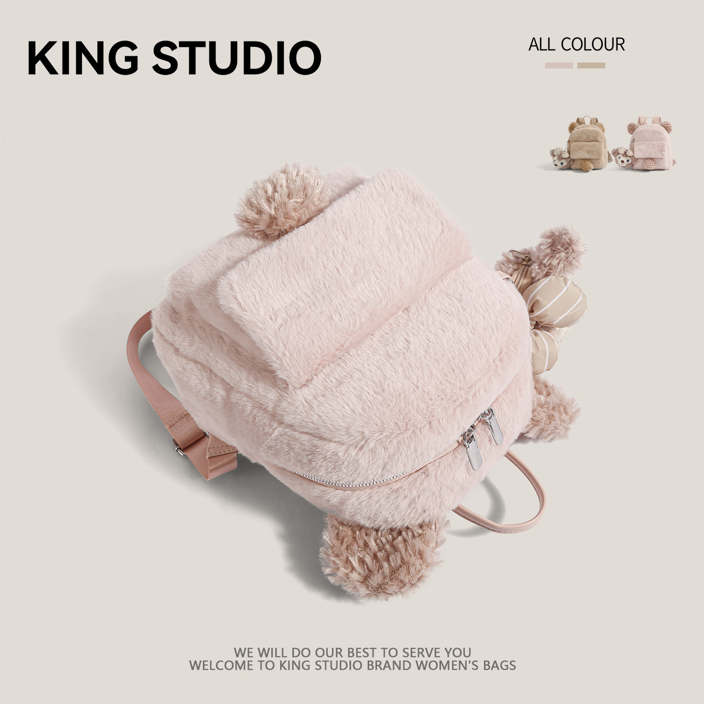 2026年新款毛绒双肩包,专为时尚女性打造,融合可爱与实用,成为日常出行的吸睛单品。采用柔软亲肤的毛绒材质,触感温暖舒适,搭配精致走线与潮流配色,尽显甜美学院风。小巧包型设计轻盈便携,容量适中,轻松容纳手机、钱包、化妆品等通勤必备品。多隔层收纳井然有序,肩带可调节,背负舒适不勒肩。无论是搭配卫衣、连衣裙还是大衣,都能轻松驾驭,百搭不挑风格。无论是上学、上班、逛街还是短途出行,这款毛绒双肩包都是你不可或缺的时尚伴侣,温暖与潮流兼具,可爱与实用并存。