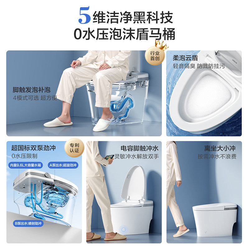 天恒洁卫浴智能马桶家用智控翻盖泡沫盾全自动冲水坐便器正品H35pro