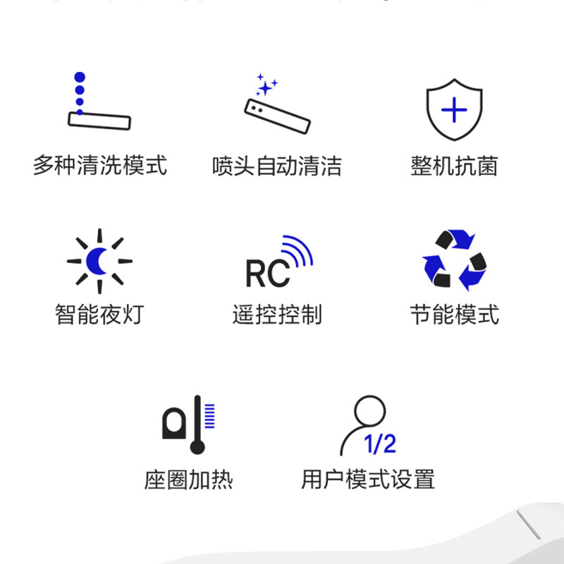 椭圆形新款即热式日本智能马桶盖坐便盖全自动冲洗烘干盖板