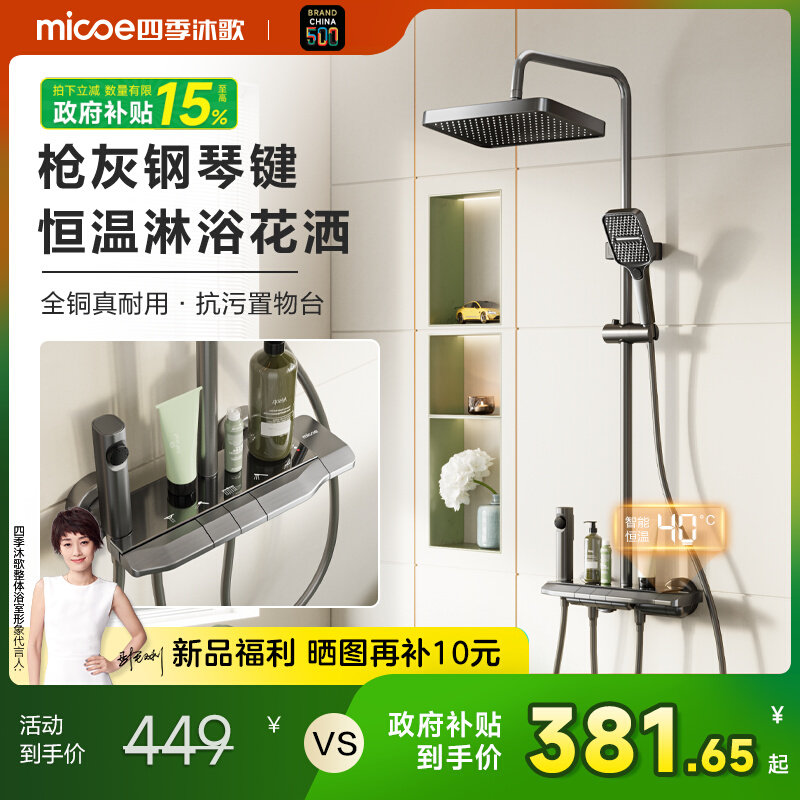 天【百亿9折券】四季沐歌卫浴家用浴室恒温增压智能淋浴花洒套装m3