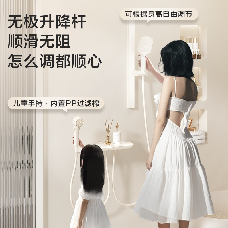 天【百亿补贴】四季沐歌卫浴奶白淋浴花洒套装浴室家用花洒喷头增压