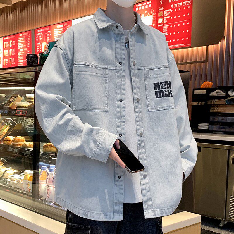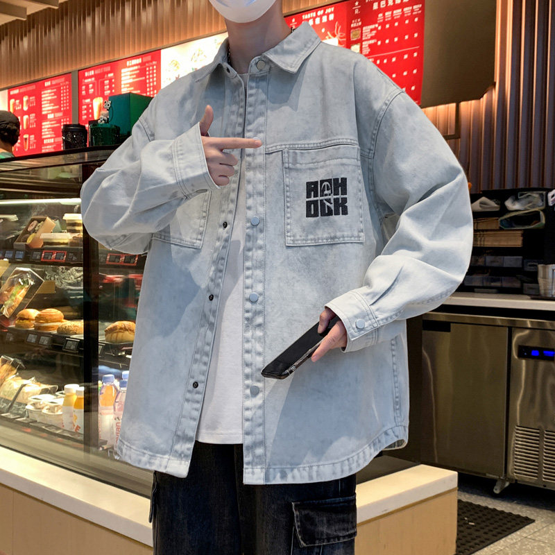 淘宝水洗牛仔外套男生春秋季新款青少年学生衬衫式夹克男装上衣服潮牌