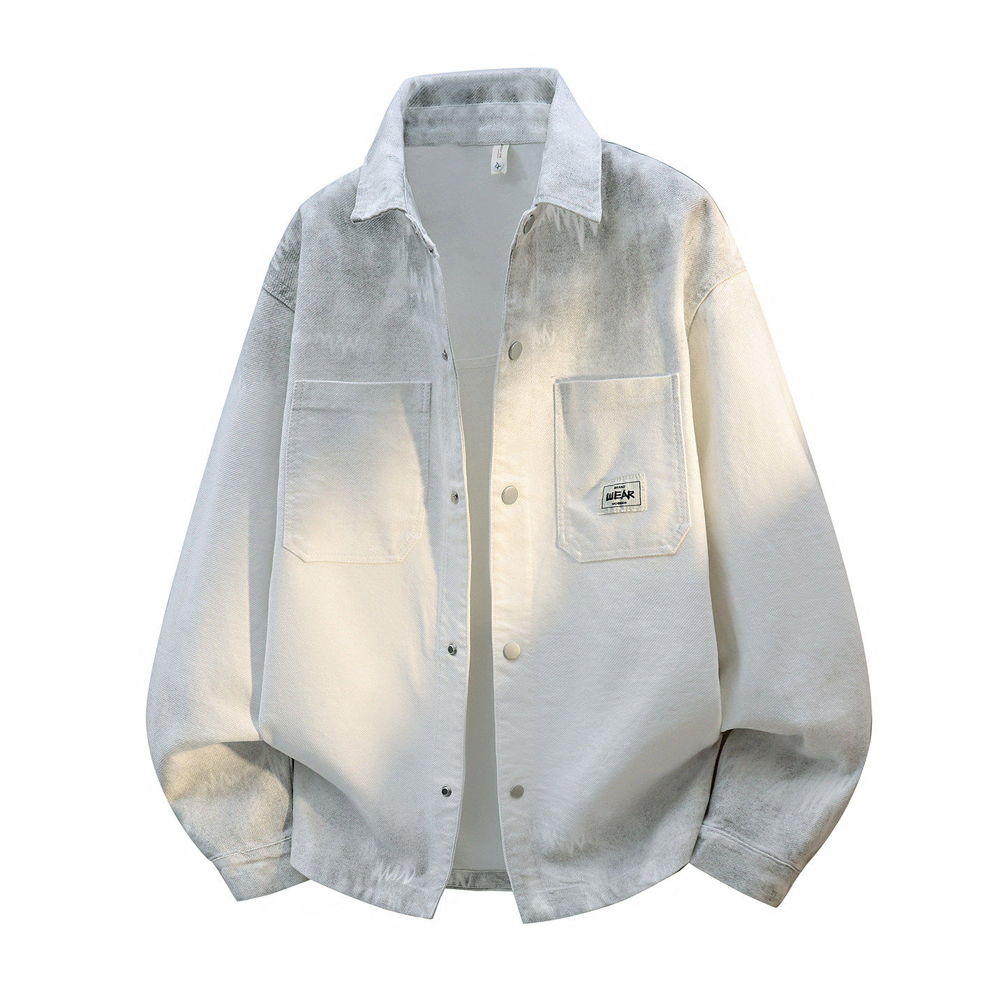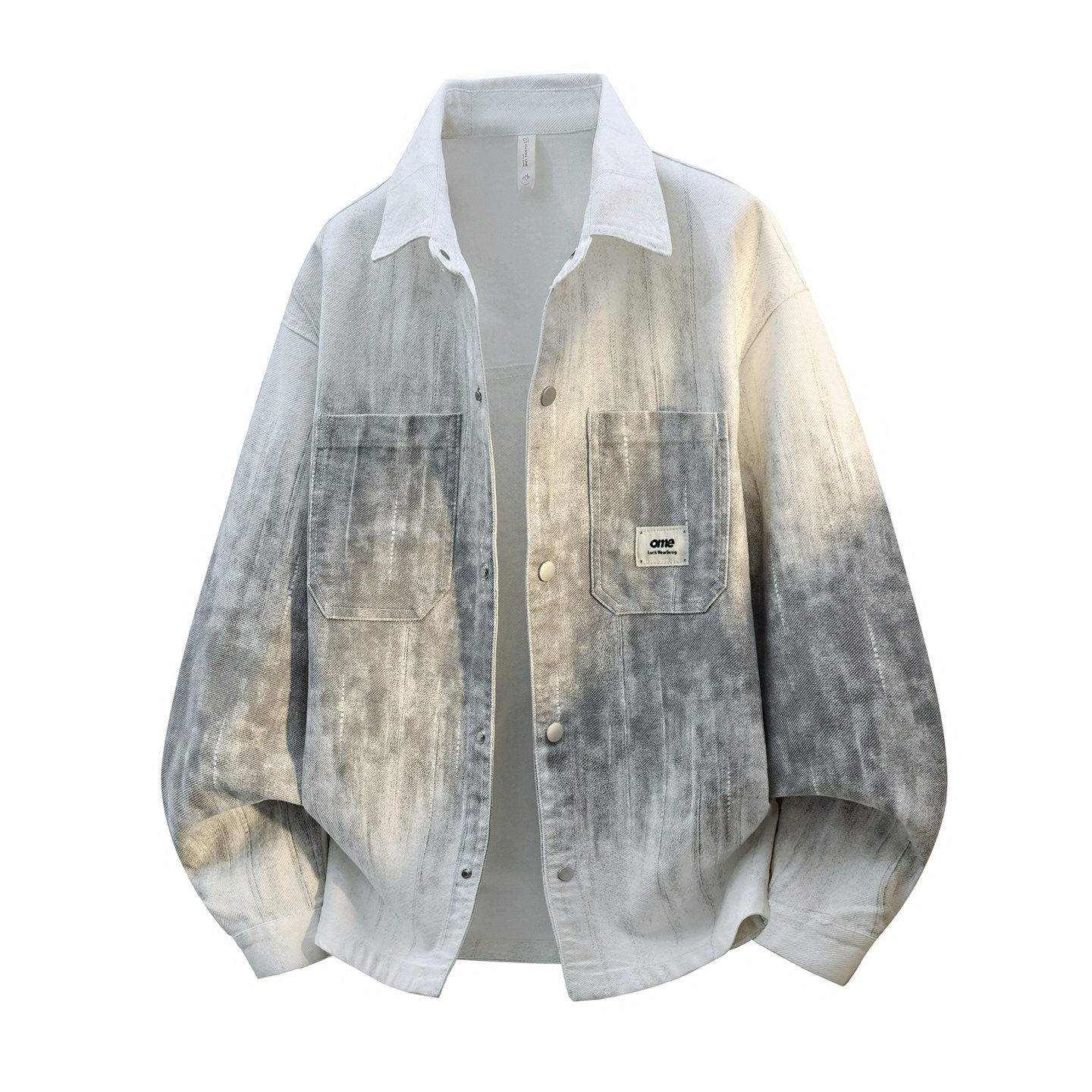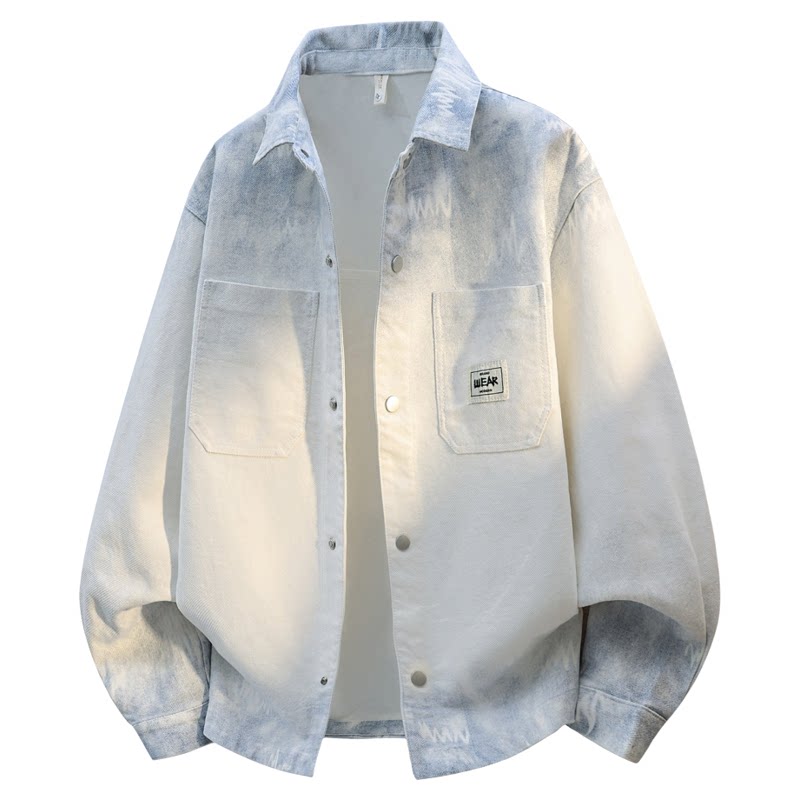 淘宝春秋季新款渐变牛仔衬衫男生开衫美式翻领潮流外套夹克男装衬衣服