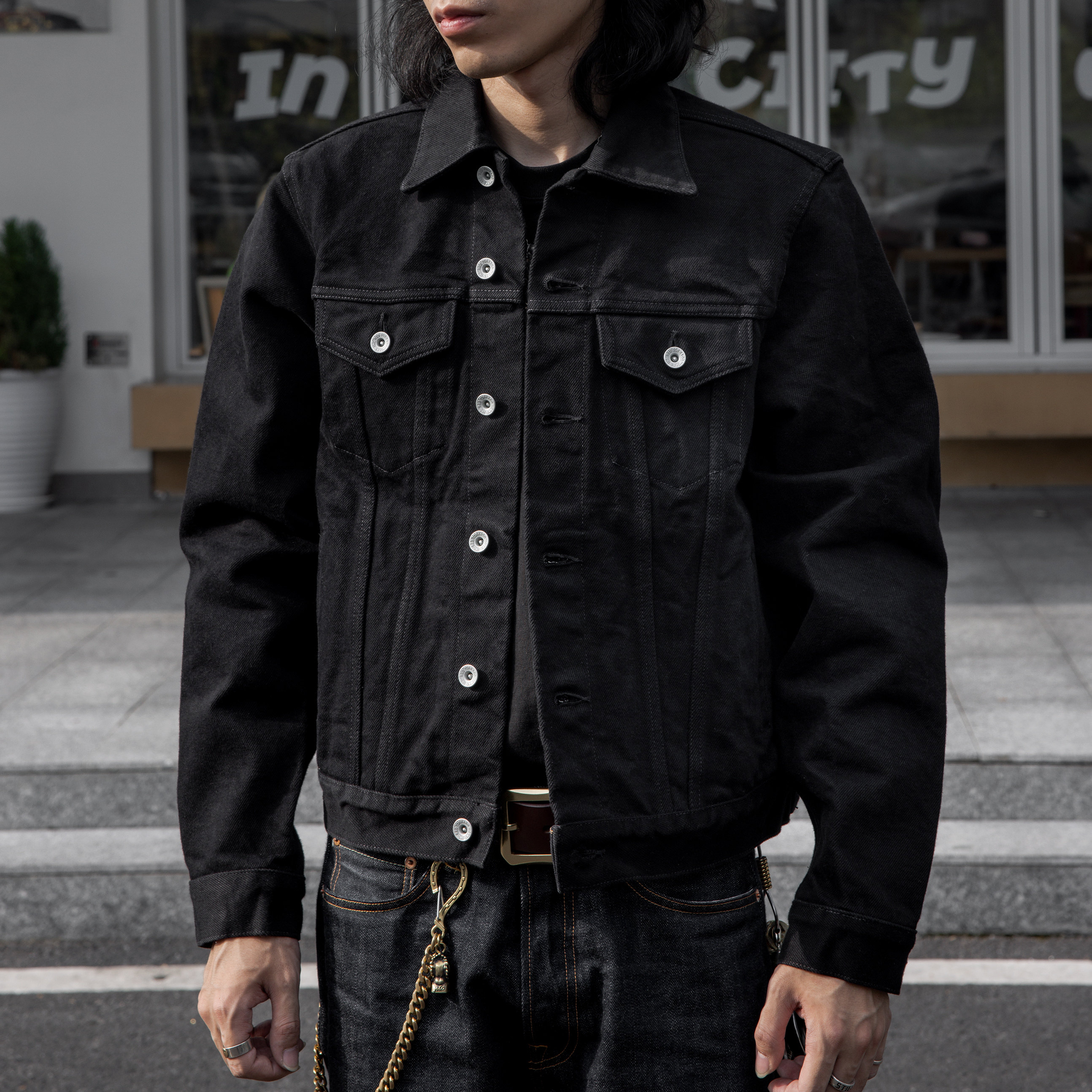 红风526黑铠牛仔夹克,采用21盎司重磅黑色原牛丹宁布打造,质感厚实挺括,极具美式复古风范。精选赤耳(Selvedge)工艺,彰显传统织机匠心,边缘锁边精致耐用。通体深邃黑色调,低调中透出硬朗气质,适合养牛爱好者与复古穿搭达人。经典短款廓形,搭配金属四合扣与加固车线,细节考究,经久耐穿。无论是单穿还是叠搭,都能轻松驾驭工装、美式复古等多种风格。黑铠之名,寓意如铠甲般坚韧,是追求品质与态度的男士衣橱必备单品。