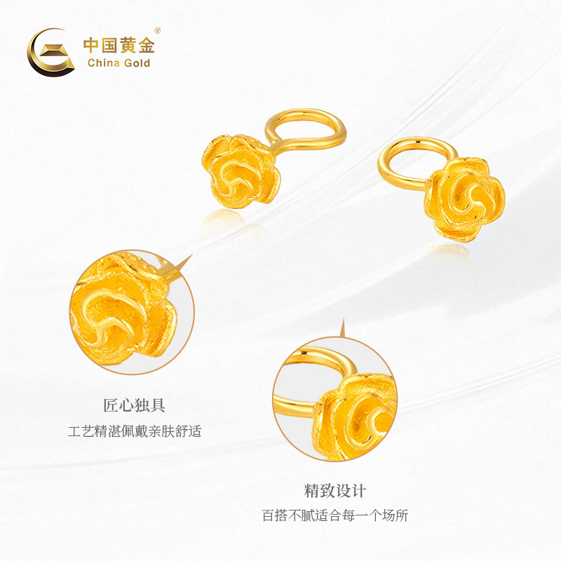 天猫【中国黄金官方店】精品玫瑰耳饰足金新品百搭气质首饰送女友闺蜜