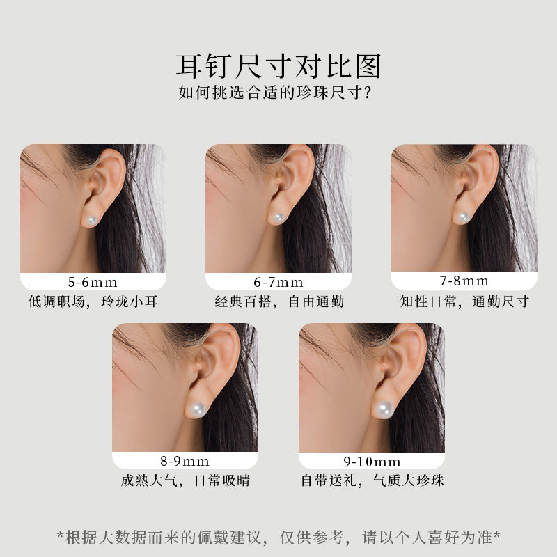 天京润珍珠怀华S925银天然淡水珍珠耳钉7-8mm圆形通勤珍珠耳饰女D
