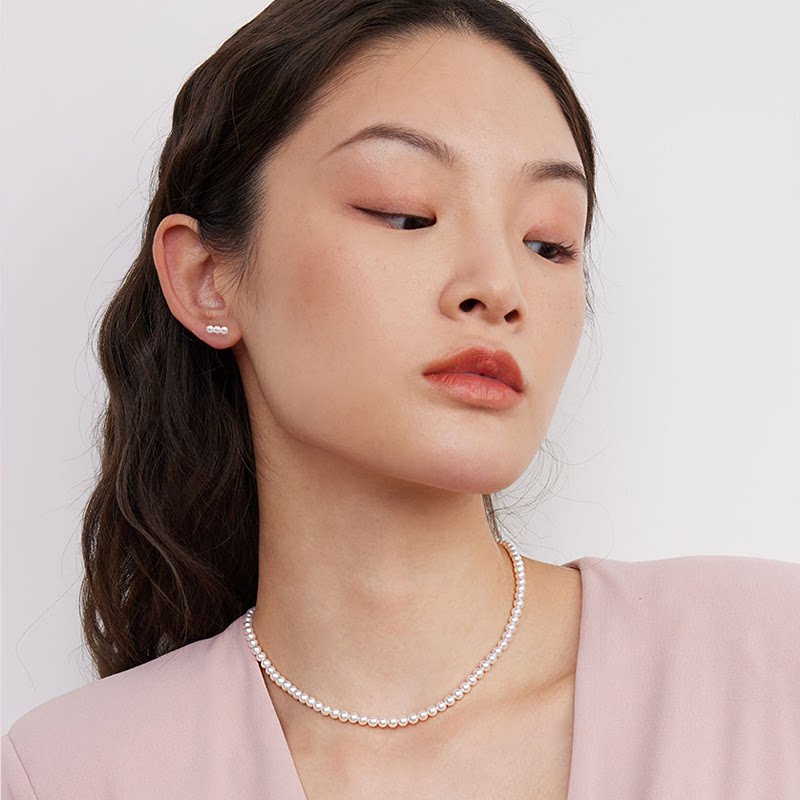 天GiO珠宝 18K金Akoya海水珍珠耳钉女淡水小米珠耳环双珠樱桃耳饰