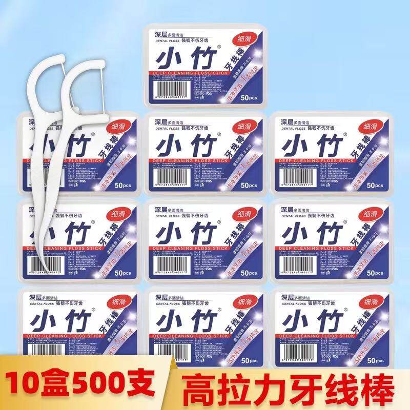 小竹牙线一次性牙线棒家用牙签线细滑剔牙家庭装盒装牙线口腔清洁