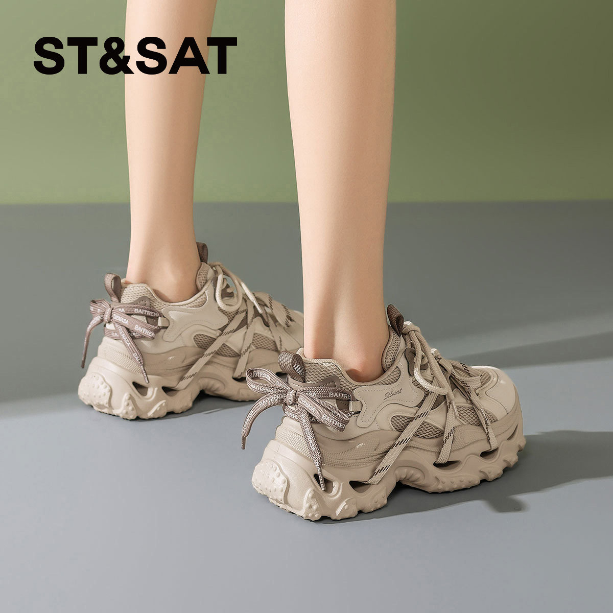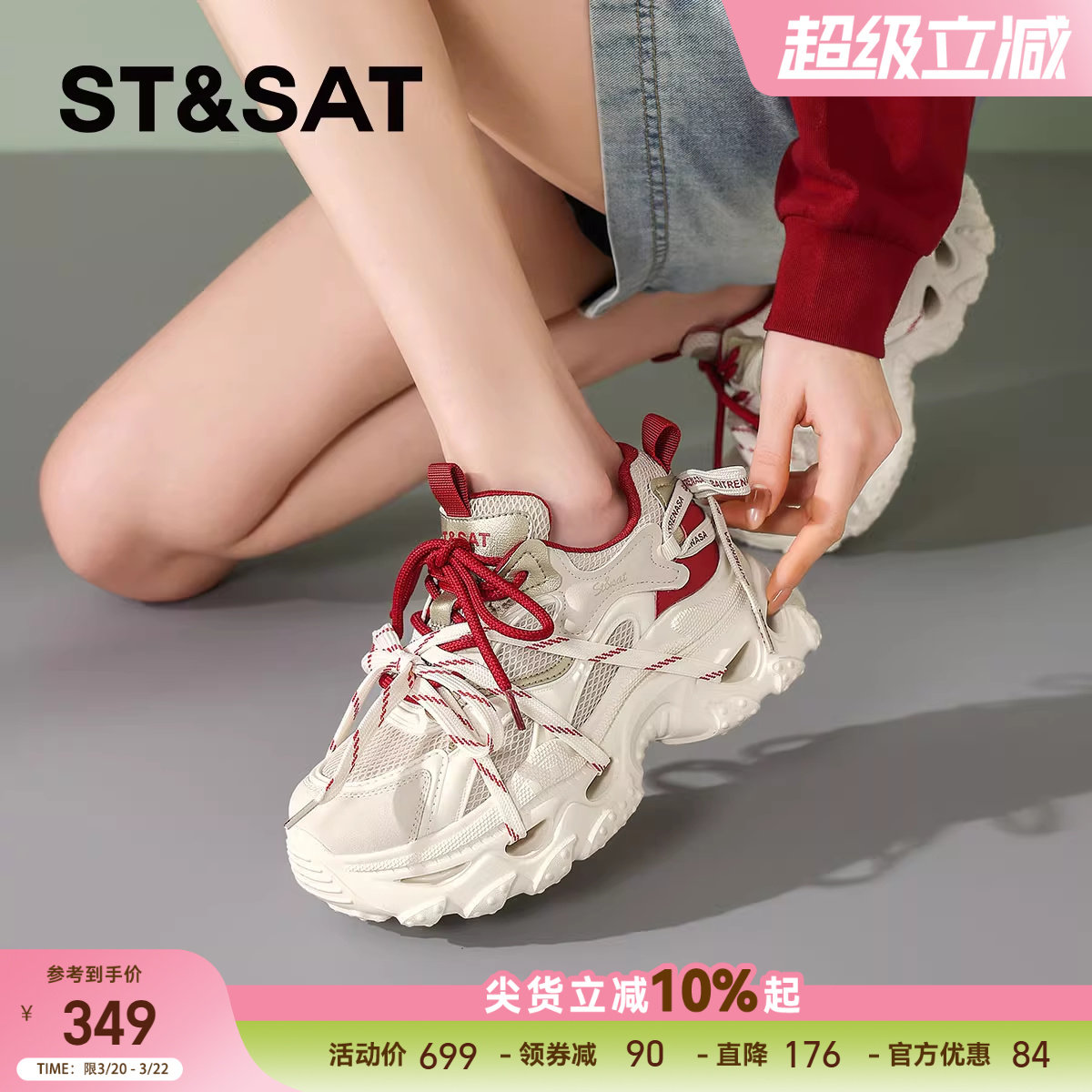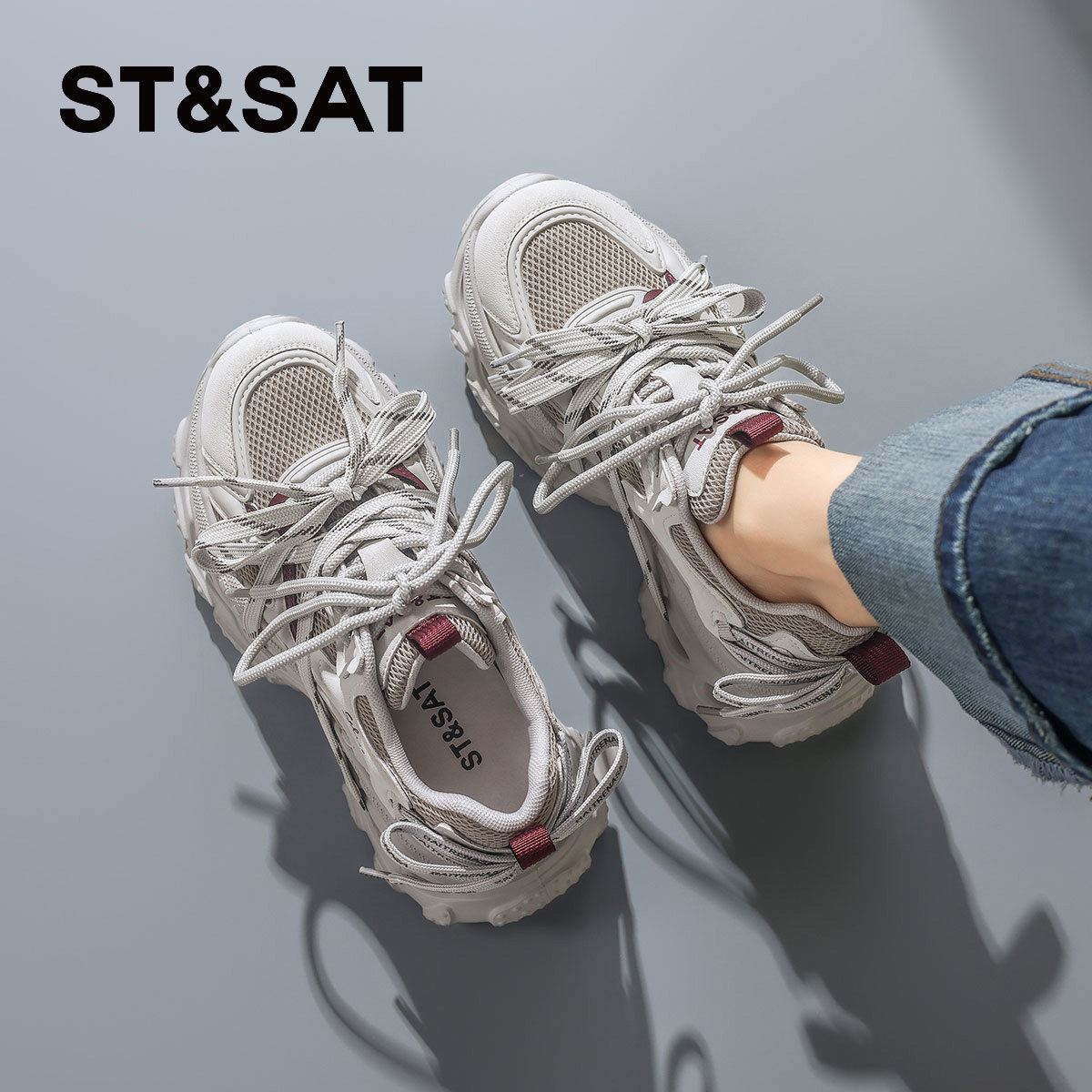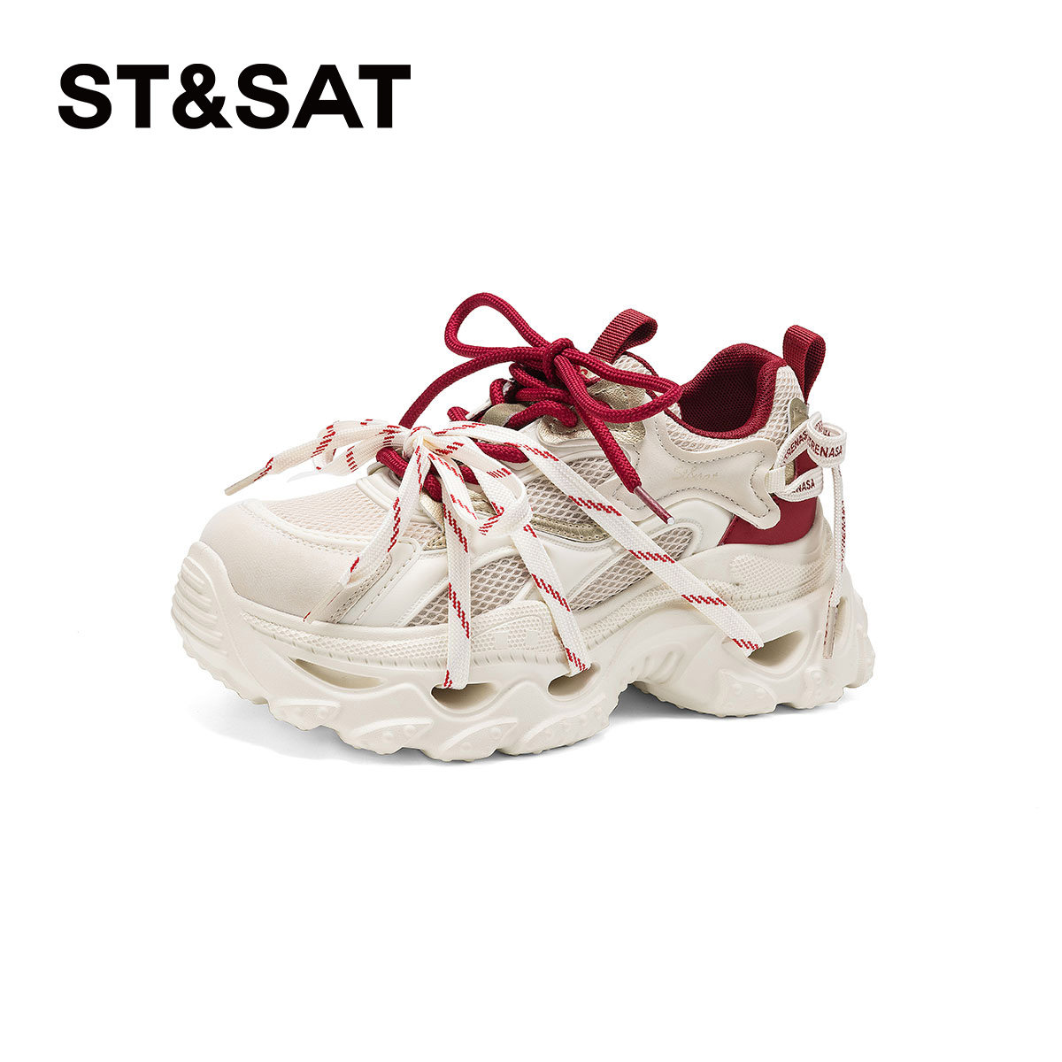 星期六2026春季新款超火绑带红色老爹鞋,以复古潮流为灵感,融合现代时尚设计,打造吸睛十足的休闲运动风。鞋身采用高品质透气材质,搭配醒目正红色调与个性绑带装饰,既显活力又具层次感。厚底设计巧妙增高,轻松拉长腿部线条,兼顾舒适与颜值。缓震鞋底提供出色支撑,适合日常通勤、逛街或轻运动。无论是搭配牛仔裤、连衣裙还是运动套装,都能轻松驾驭,展现年轻女性的自信与个性。这款红色老爹鞋无疑是2026春夏街头的必备潮品,让你每一步都充满时尚魅力。