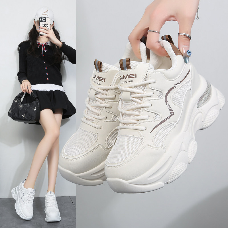 淘宝断码真皮运动休闲鞋女2026春季新款时尚百搭透气网面内增高女鞋