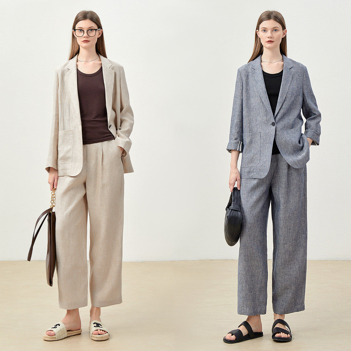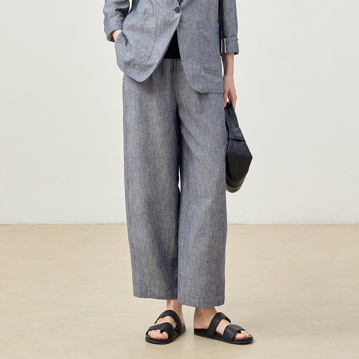 淘宝*WXZ07026 茉莉雅集 老钱复古意大利牛仔全亚麻西装松紧腰萝卜裤