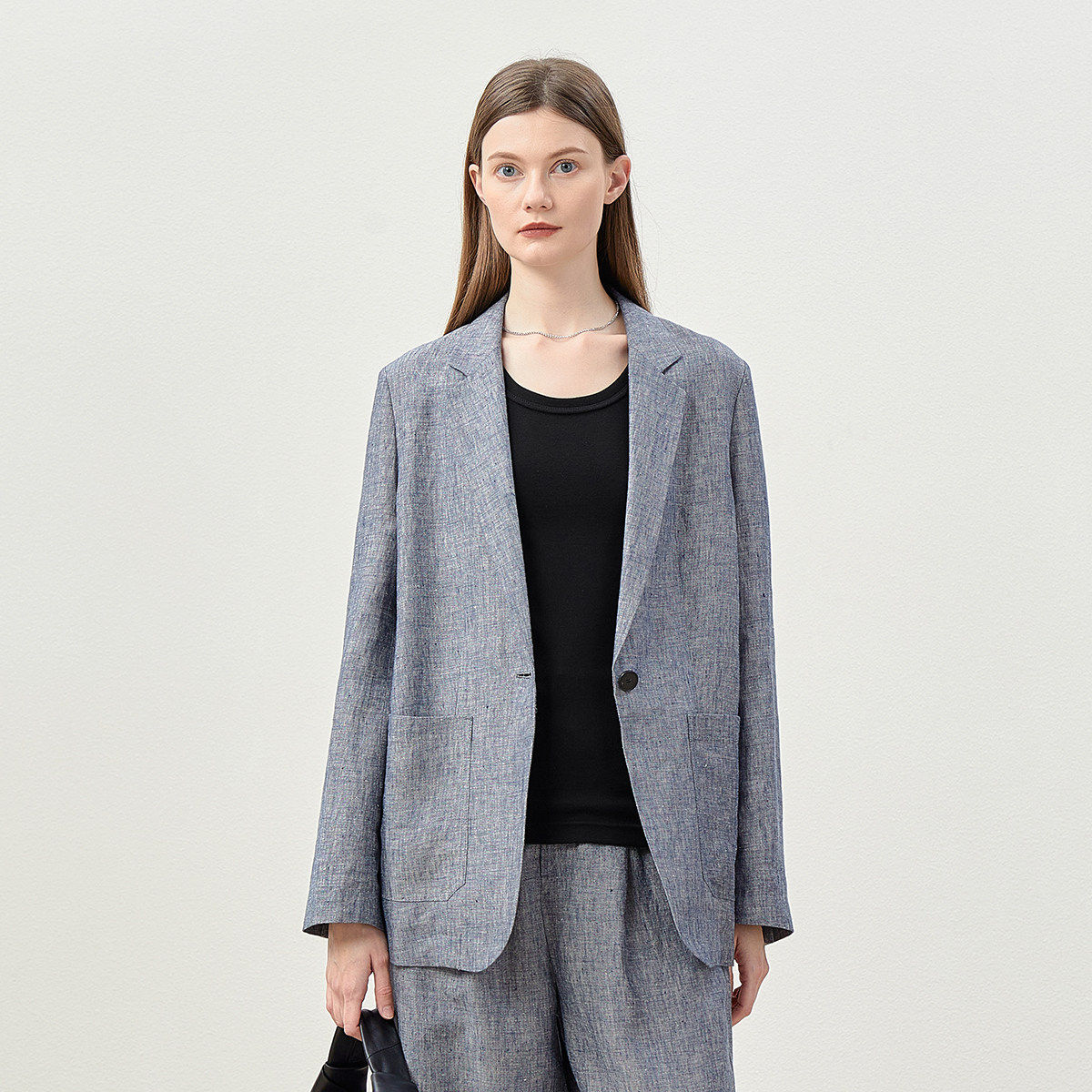 WXZ08022 高智格雷小千鸟格意大利全亚麻西装外套衬衫气球裤女