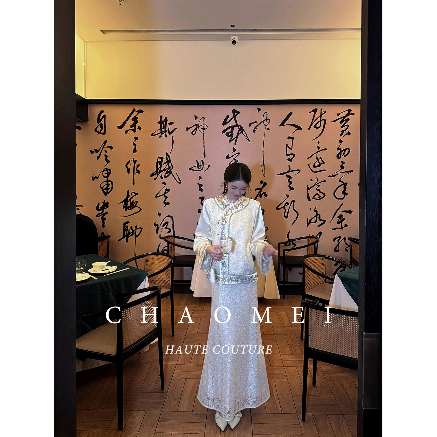MOPASSANT【矜月】国风新中式女装套装,将东方美学与现代剪裁巧妙融合。短外套采用精致刺绣工艺,以雅致花鸟或祥云纹样点缀,彰显古典韵味;搭配同系列蕾丝连衣裙,轻盈通透的蕾丝面料勾勒出柔美身姿,裙摆微扬间尽显温婉气质。整体设计兼顾传统意境与日常实穿性,立领、盘扣等细节传承中式元素,色彩以月白、黛青等清雅色调为主,适合出席雅集、茶会或日常通勤。矜月系列以匠心工艺诠释新中式女性的内敛与优雅,是追求文化质感与时尚品味女性的理想之选。