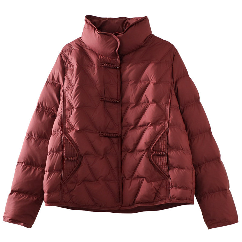 淘宝冬季新款复古立领白鸭绒盘扣羽绒服女洋气休闲宽松纯色加厚短外套