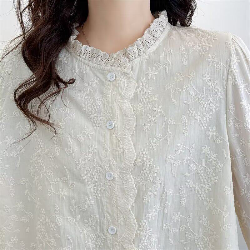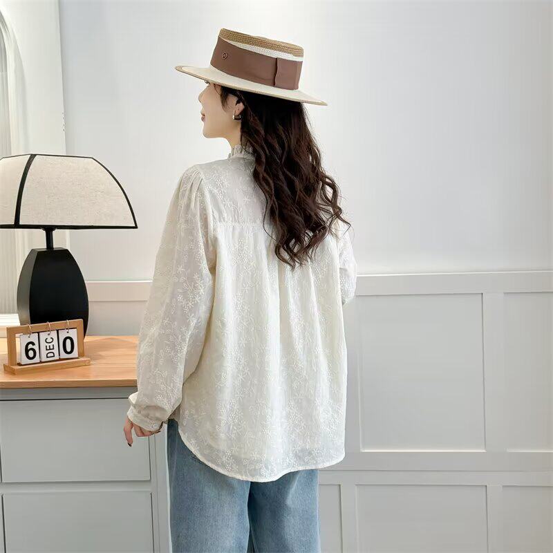 淘宝大码女装2025春季新款胖mm显瘦遮肉木耳领刺绣长袖衬衫女上衣衬衣