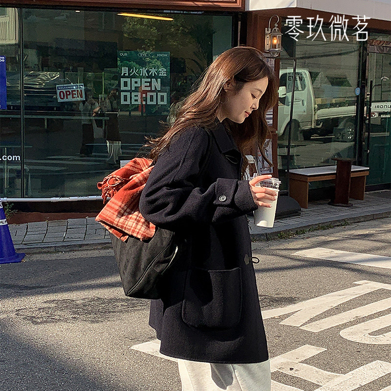 天猫09women韩国大码女装秋冬毛呢外套牛角扣保暖中长款羊毛大衣85010